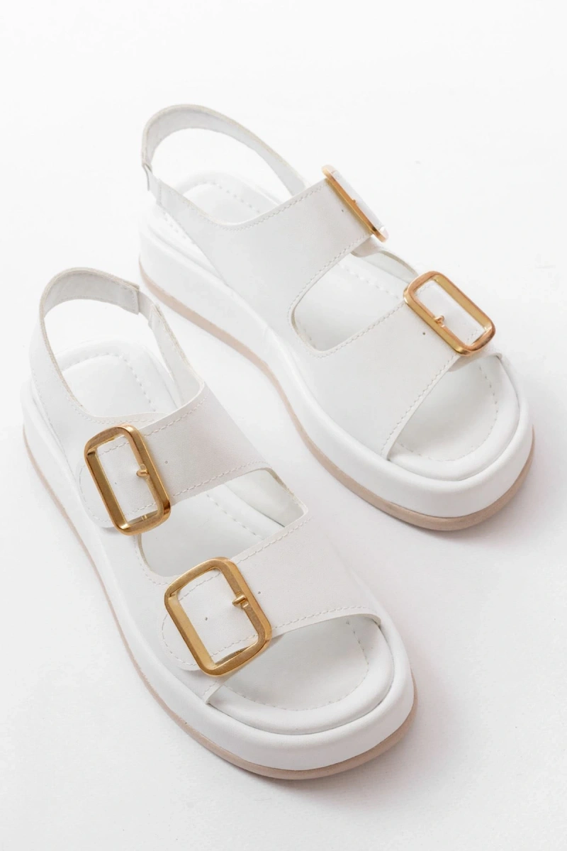 1187 Beyaz Dolgu Topuk Lastik Baretli Kadın Sandalet
