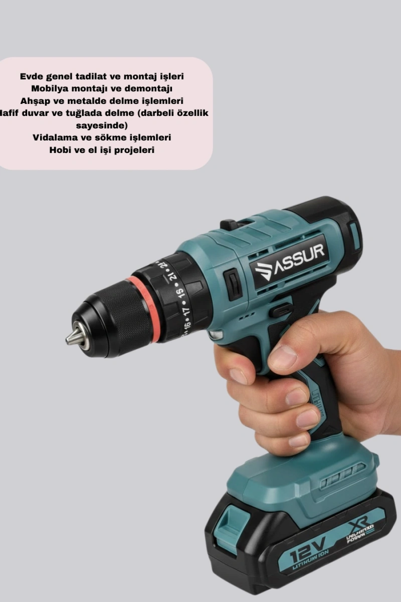 Profesyonel performansı kompakt bir tasarımla birleştiren bu dijital matkap seti, 18 parça aksesuar içeriği ile çok yönlü kullanım sunar. Çift batarya desteği, uzun süreli ve kesintisiz çalışma avantajı sağlar.Şarjlı yapısı sayesinde kabloya ihtiyaç duymadan her ortamda kullanılabilir. Dijital ekran, kullanım sırasında kontrolü kolaylaştırır ve modern bir deneyim sunar.Dayanıklı, güçlü ve pratik bir matkap arayanlar için ideal bir tercihtir.