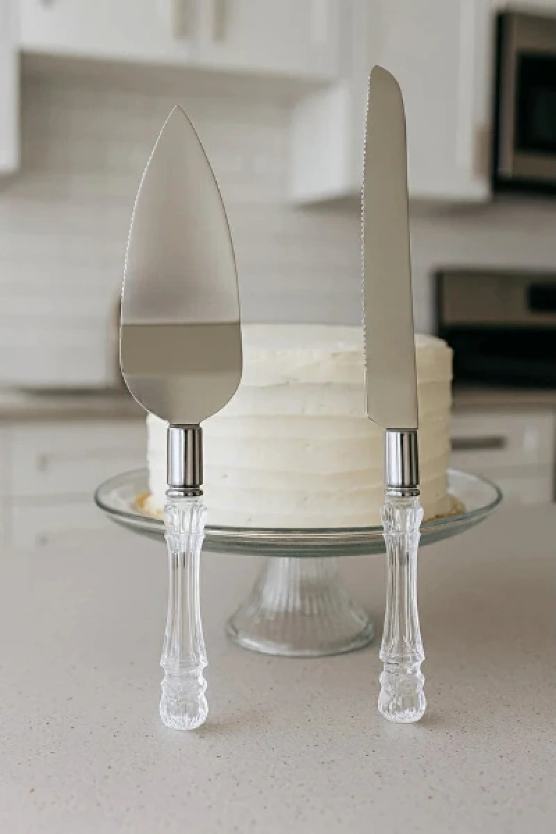 2 PARÇA SERVİS SETİÜrün Özellikleri2 Parça Servis Seti şık ve özel tasarımıyla pasta, kek ve tatlı servislerinde hem estetik hem de pratik kullanım sağlar. Set içerisinde yer alan uzun servis bıçağı 33 cm, spatula ise 26 cm uzunluğunda olup ideal boyutları sayesinde dilimleri düzgün şekilde kesip servis etmeye yardımcı olur. Şeffaf görünümlü kabza tasarımı sofralara zarif bir görünüm kazandırırken paslanmaz çelik servis yüzeyleri dayanıklılık ve uzun ömürlü kullanım sunar. Kesim bıçağı 4,5 cm genişliğiyle rahat kavrama ve dengeli kesim sağlarken, spatula yüzeyi dilimleri kırmadan almayı kolaylaştırır. Özel günler, doğum günleri, nişan ve düğün pastalarında tercih edilebilecek zarif sunum alternatifi olan bu set, mutfakta hem günlük kullanıma hem davet sofralarına uygundur. Paketli halde gönderilir.Paket İçeriği1 Adet Servis Bıçağı (33 cm)1 Adet Servis Spatulası (26 cm)