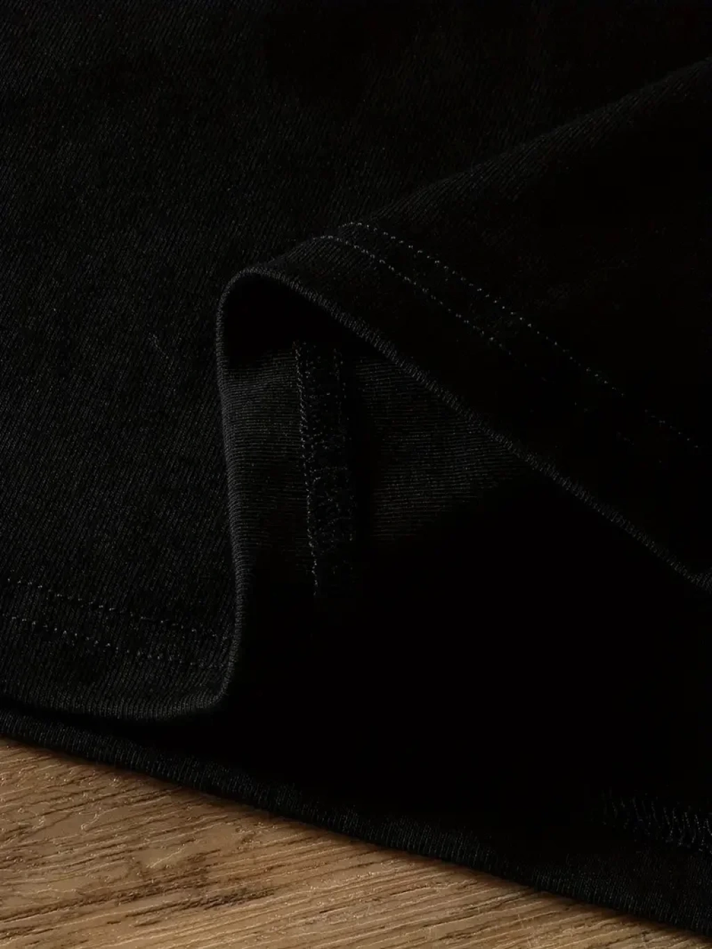 20/1 Penye Compack Ayı Baskılı Oversize Bisiklet Yaka Kısa Kol T-shirt - Siyah