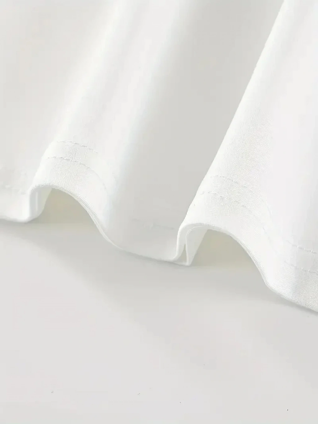 20/1 Penye Compack Baskılı Oversize Kısa Kol Bisiklet Yaka T-shirt - Beyaz