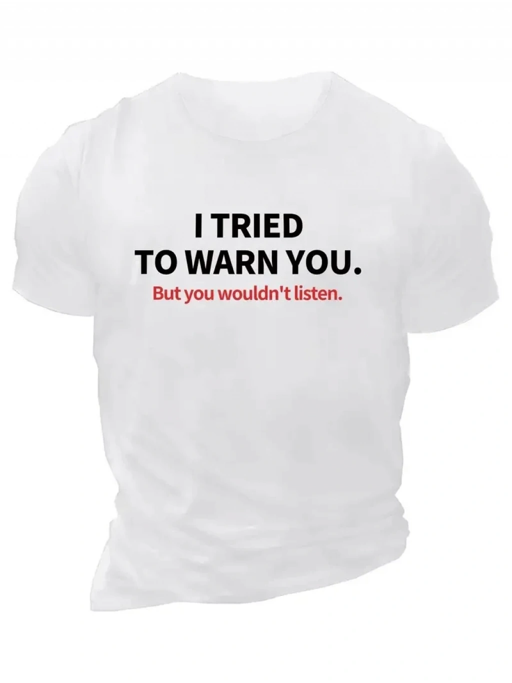 20/1 Penye Compack I TRIED TO WARN YOU. Baskılı Oversize Bisiklet Yaka T-shirt - Beyaz