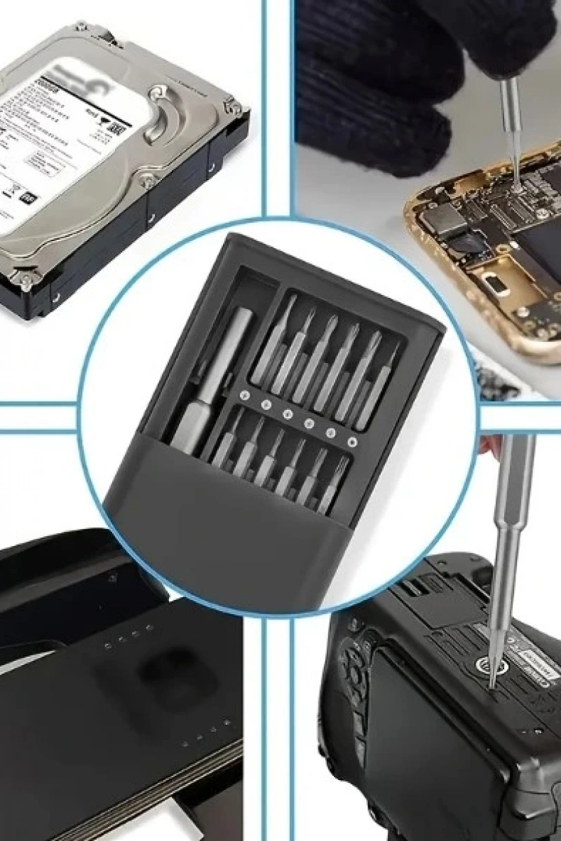 25 PARÇA TORNAVİDA SETİ1.24-in-1 tornavida seti: bu Set 24 farklı tornavida ucu içerir, bu da çok yönlü ve çeşitli görevler için uygundur. Cep telefonları, gözlükler, kameralar, saatler ve diğer ev eşyalarını onarmak için özelleştirilebilir.2. Geniş uygulama yelpazesi: kapsamlı tornavida uçları seti ile, bu set hem profesyonel hem de ev kullanım için mükemmeldir. Farklı onarım ve bakım görevlerini kolaylıkla halledebilmenizi sağlayan çok çeşitli vida tipleri ve boyutları kapsar.3. Uygun depolama: set, tornavida uçları için güvenli bir depolama sağlayan bir geçmeli kilitli plastik kutu ile birlikte gelir. Kutunun kompakt boyutu, araçlarınızın organize edilmesini ve erişilebilir olmasını sağlayarak taşımayı ve saklamayı kolaylaştırır.4. Dayanıklı ve güvenilir: tornavida uçları, dayanıklılık ve uzun ömürlü performans sağlayan yüksek kaliteli malzemelerden yapılmıştır. Sık kullanıma dayanacak şekilde tasarlanmıştır ve verimli vidalama için güvenilir bir tutuş sağlar.5. Ergonomik tasarım: tornavida sapı, rahat ve kaymaz bir tutuş sağlayan, akılda ergonomik prensiplerle tasarlanmıştır. Bu, hassas ve kontrollü kullanım sağlar, onarım sırasında hassas eşyalara kayma veya zarar verme riskini azaltır.