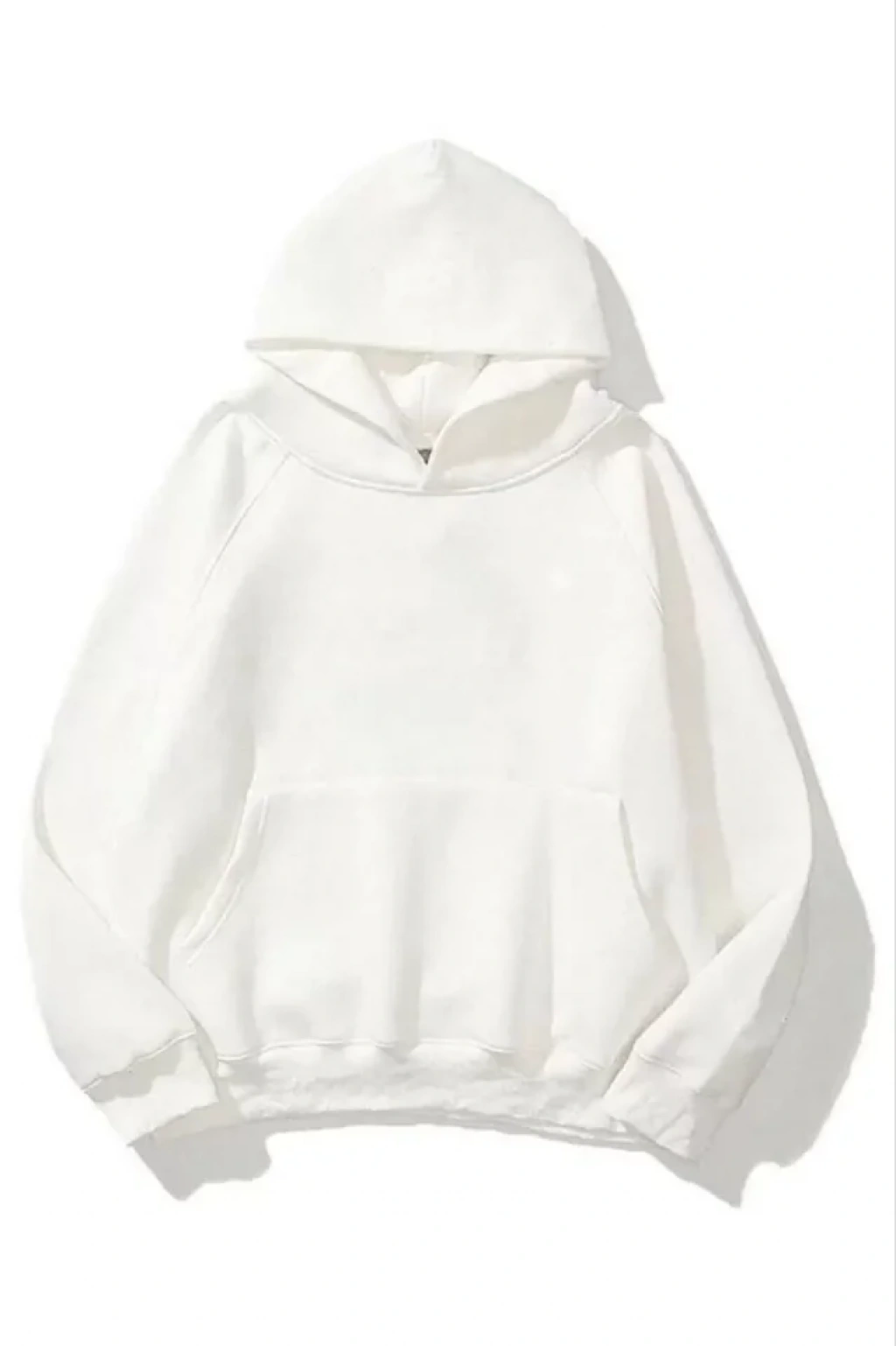 3 İplik Pamuklu Unisex Kapşonlu Sweetshirt - Beyaz
