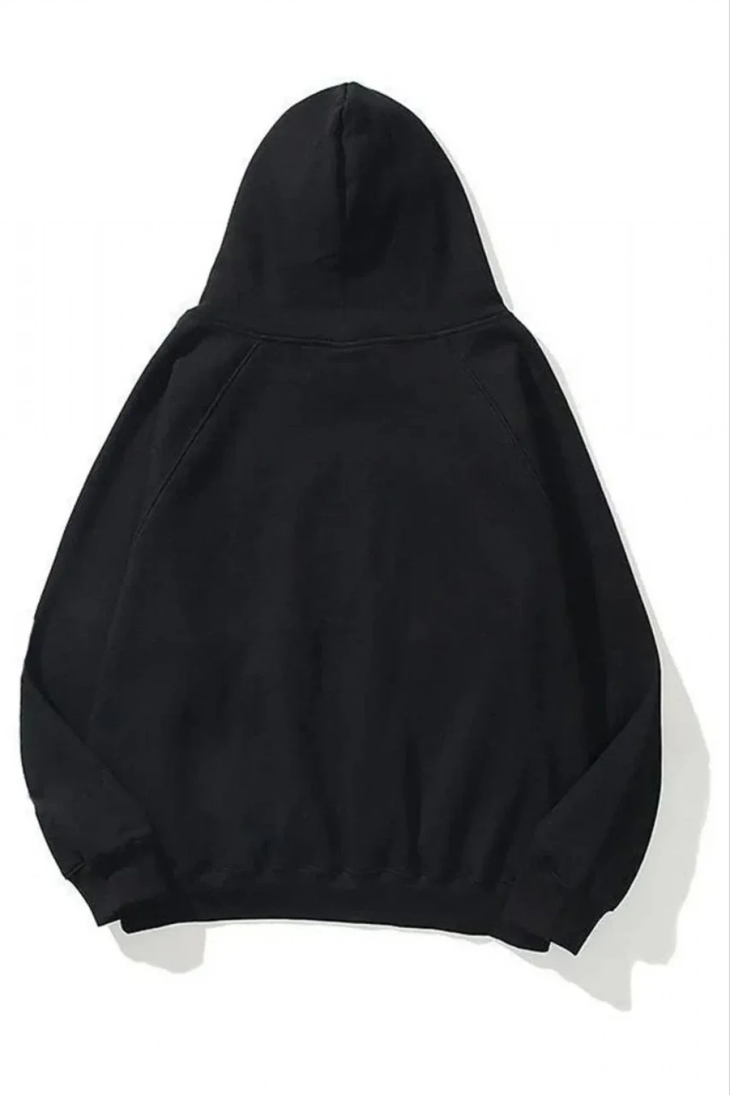 3 İplik Pamuklu Unisex Kapşonlu Sweetshirt - Siyah