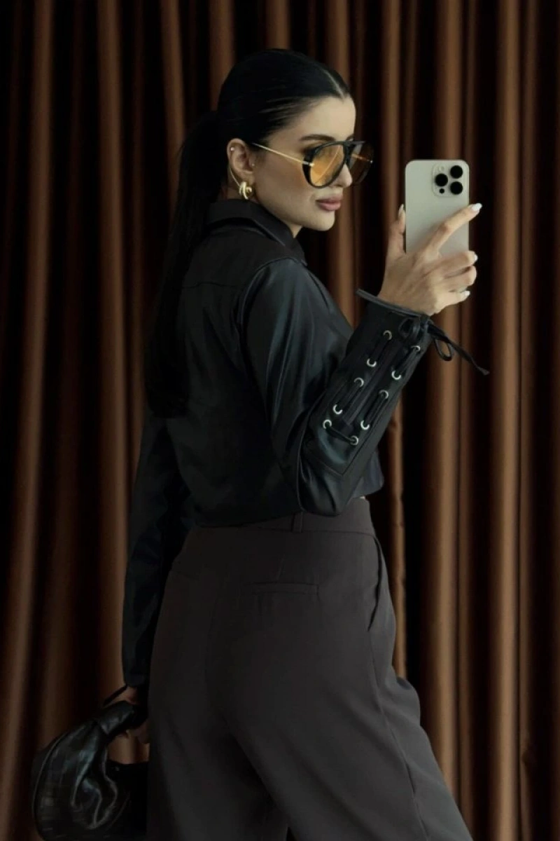 Kadın Uzun Kollu Yakalı önden Düğmeli Kısa Ceket