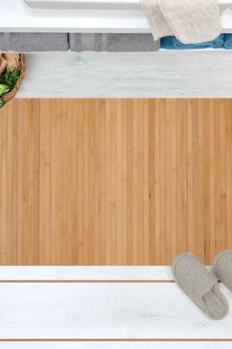 AHŞAP PASPASÜrün ÖzellikleriAhşap Paspas, %100 doğal bambu malzemeden üretilmiş çevre dostu ve dayanıklı bir üründür. Kaymaz tabanı sayesinde zemin üzerinde güvenli kullanım sunar. Suya ve neme dayanıklı yapısı sayesinde banyo gibi ıslak alanlarda uzun ömürlü kullanım sağlar. Kolayca temizlenebilir, su ve sabunla silinerek hijyenik tutulabilir. Şık ve minimalist tasarımı ile her dekorasyona uyum sağlar. 45x70 cm boyutunda olup, banyo, mutfak, balkon, sauna, spa ve giriş alanlarında rahatlıkla kullanılabilir.Paket İçeriği1 Adet Ahşap Paspas