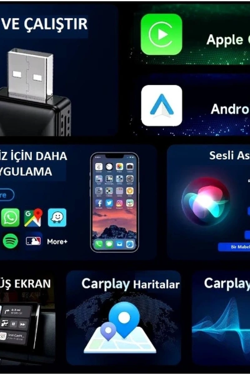 ANDROID CAR PLAY ADAPTÖRÜrün ÖzellikleriAndroid Car Play Adaptör, araç içi multimedya deneyiminizi en üst seviyeye taşıyan kompakt ve pratik bir çözümdür. Bluetooth 5.4 teknolojisi ile hızlı ve kararlı bağlantı sunar. 2 in 1 özelliği sayesinde hem USB-C hem de USB-A girişleriyle uyumludur. Wi-Fi 6 teknolojisiyle daha hızlı veri aktarımı sağlar. Apple Car Play ve Android Auto desteği ile tüm ekranlarla uyumlu çalışır. Tak-çalıştır özelliği sayesinde ek yazılım kurulumuna gerek kalmadan kolayca kullanılabilir. Portatif boyutu ile her yere rahatlıkla taşınabilir. 2 yıl garantili olmasıyla uzun süre güvenli kullanım imkânı sunar.Paket İçeriği1 adet Android Car Play Adaptör