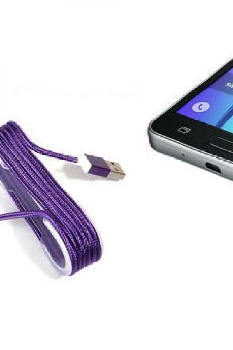 1 Adet Android Örgü Şeklinde Renkli Çelik Şarj Data Kablosu - Mor