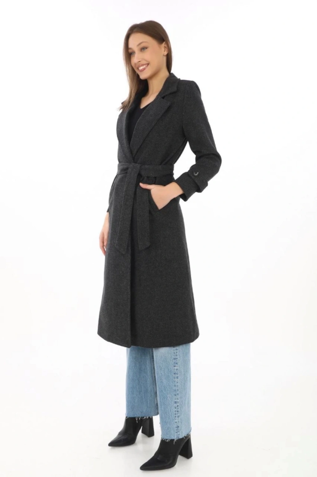 Astarlı Balık Sırtı Kaşmir Kaşe Kaban - Siyah