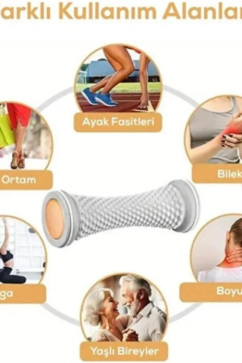 AYAK MASAJ SİLİNDİRİÜrün ÖzellikleriAyak Masaj Silindiri, ergonomik yapısı ve derin doku masajı sağlayan özel tasarımı sayesinde gün boyu ayakta kalanlar için etkili bir rahatlama sunar. Yüzeyindeki yoğun masaj çıkıntıları ayaktaki gerginliği hedef alarak bölgesel kan dolaşımını artırır ve ağrıların hafiflemesine yardımcı olur. Düzenli kullanımda cilt sıkılaştırıcı etkisiyle ayakların daha pürüzsüz, daha canlı ve daha sıkı görünmesini destekler. Hem ev kullanımına hem de spor sonrası toparlanmaya uygun çok amaçlı bir üründür.Çok renkli ve modern tasarımı masaj deneyimine keyif katar. Yüksek kaliteli, dayanıklı ve uzun ömürlü malzemeden üretilmiş olması sayesinde hem ayak hem de vücudun farklı bölgelerinde güvenle kullanılabilir. Plantar fasciitis, topuk dikeni gibi sorunları olan kişiler için de rahatlatıcı bir etki sağlayabilir; ancak bu tür rahatsızlıklarda doktor ya da uzman tavsiyesi ile kullanılması önerilir.Yalnızca ayaklara değil, omuz, dirsek, kol, topuk, bel, boyun ve bacak bölgelerine de uygundur. Hafif ve taşınabilir yapısıyla evde, ofiste veya seyahatlerde kolayca kullanılabilir. Günlük rutininize ekleyerek stresinizi azaltabilir, kaslarınızı gevşetebilir ve bedeninizi daha dinç hissettirebilirsiniz.Paket İçeriği1 Adet Ayak Masaj Silindiri