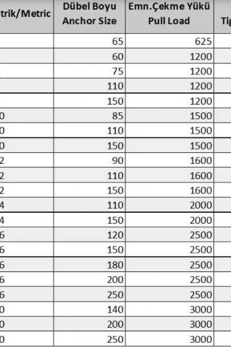 Civatalı Borulu Dübel : Beton kalitesi düşük olan yerlerde tercih edilen dübel çeşididir. Üzerindeki kovanı borudan imal edilmiştir.