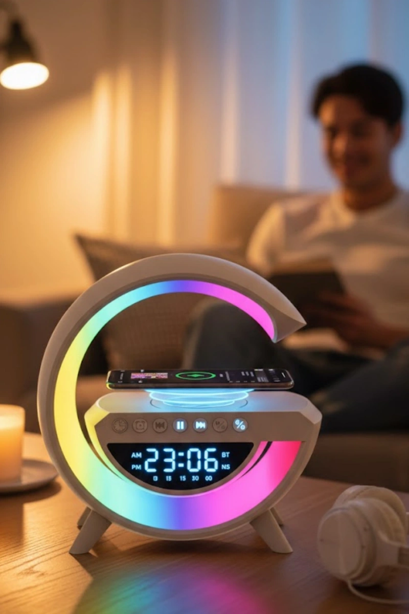 Kablosuz RGB hoparlör, sade kullanım yapısı ve dikkat çekici tasarımıyla günlük müzik deneyimini zenginleştirir. Kırmızı tonlu RGB aydınlatma, ortama enerjik bir hava katar ve ürünü dekoratif bir unsur haline getirir. Modern ve kompakt yapısı sayesinde farklı alanlarda rahatlıkla kullanılabilir.Bluetooth bağlantı özelliği, akıllı telefonlar ve diğer cihazlarla hızlı eşleşme sağlar. Kablosuz kullanım, müzik dinlerken konfor sunar. USB, FM radyo ve TF kart desteği sayesinde farklı müzik kaynakları kullanılabilir. Bu özellik, kullanıcıya geniş bir medya erişimi sağlar.AUX girişi, harici ses kaynaklarıyla uyumlu çalışmasına olanak tanır. Çoklu bağlantı seçenekleri, hoparlörü farklı kullanım senaryolarına uygun hale getirir. Ev, ofis ve kişisel alanlarda rahatlıkla tercih edilebilir.5–10 saat arasında değişen kullanım süresi, günlük müzik dinleme ihtiyaçlarını karşılar. Uzun süreli performans, kesintisiz eğlence sağlar. Suya veya tere dayanıklı olmaması nedeniyle normal günlük kullanım için uygundur.RGB aydınlatma sistemi, müzik dinlerken ortamda hoş bir ambiyans oluşturur. Işık efektleri, görsel bir şölen sunarken ses performansı ile birlikte keyifli bir deneyim yaşatır. Şık tasarımı, çoklu bağlantı seçenekleri ve pratik kullanımı ile öne çıkan bu hoparlör, günlük kullanım için ideal bir tercihtir.