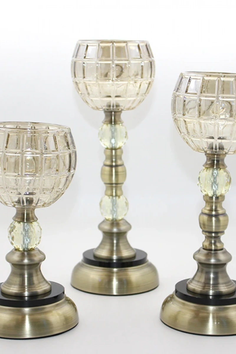 CAM 3'LÜ ŞAMDANÜrün ÖzellikleriCam 3'lü Şamdan seti, zarif tasarımı ve şık cam detaylarıyla ev dekorasyonunuza zarafet katacak bir üründür. 33 cm, 27 cm ve 22 cm boyutlarında üç farklı yükseklikte şamdandan oluşan bu set, mum ışığının ambiyansını artırarak dekoratif bir görünüm sunar. Metalik detaylarla tamamlanan şamdanlar, klasik ve modern dekorasyonlarla uyum sağlar. Salon, yemek masası, yatak odası veya özel günlerde sofralarınızda şıklık yaratmak için idealdir.Paket İçeriği1 Adet 33 cm Şamdan1 Adet 27 cm Şamdan1 Adet 22 cm Şamdan