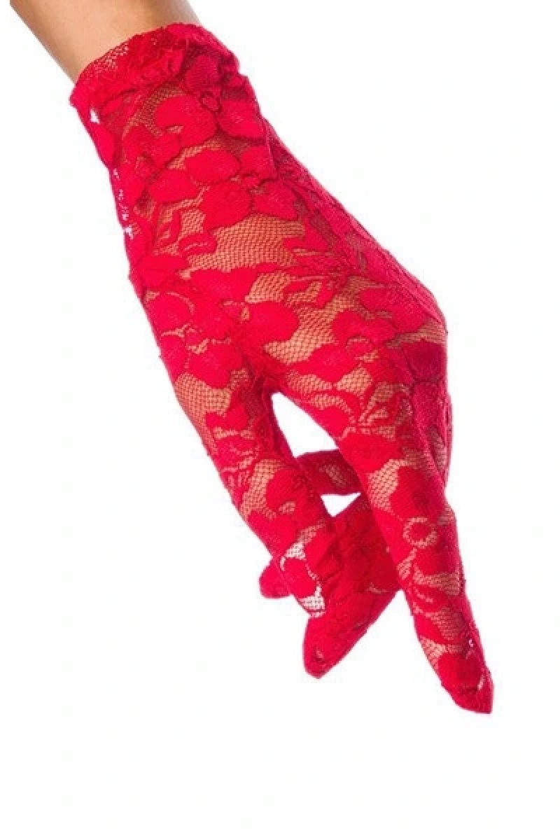 Dantelli Kırmızı Gece Eldiveni
