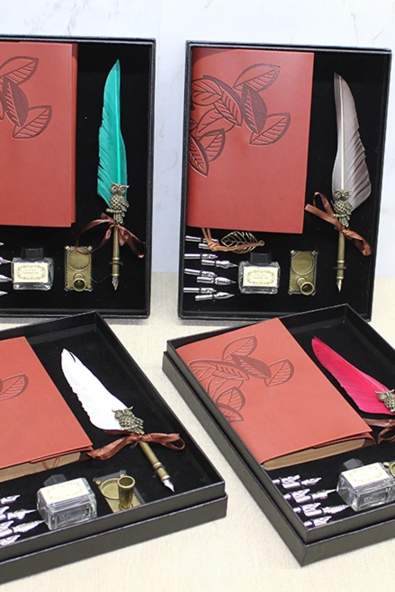 DERİ DEFTERLİ DİVİT HOKKA SETİ MODEL 1Ürün ÖzellikleriDeri Defterli Divit Hokka Seti Model 1, nostaljik yazı deneyimini modern bir sunumla bir araya getiren şık ve özel bir yazı setidir. 29x21 cm kutu boyutuna sahip bu set, deri kapaklı defter, divit kalem, farklı uç seçenekleri ve hokka mürekkebiyle zengin bir kullanım alanı sunar. Deri defter kişisel notlar, özel yazılar, günlük tutma ve kaligrafi çalışmaları için ideal bir yüzey sağlarken divit kalem nostaljik ve estetik bir yazım hissi yaratır. Hokka mürekkebi ile birlikte sunulan farklı uçlar hem ince hem kalın hatlarda yazı yazma imkânı verir. Hem koleksiyon değeri taşıyan hem de özel bir hediye niteliği sunan bu set, yazı sanatına ilgi duyanlar için ideal bir tercihtir. Renk seçimi yapılamaz; görseldeki seçeneklerden biri karışık olarak gönderilir.Paket İçeriği1 adet Deri Defterli Divit Hokka Seti Model 1