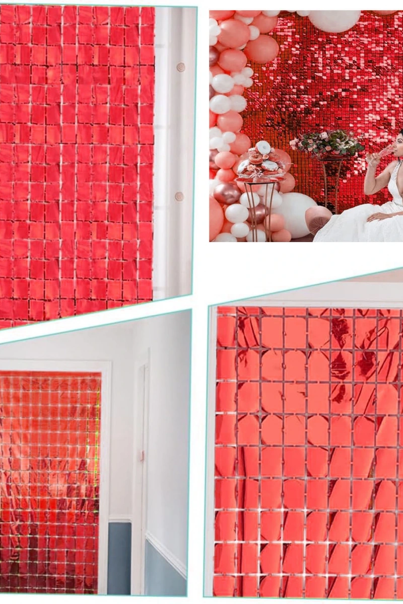 Ekstra Metalize Kırmızı Disko Kapı Perdesi