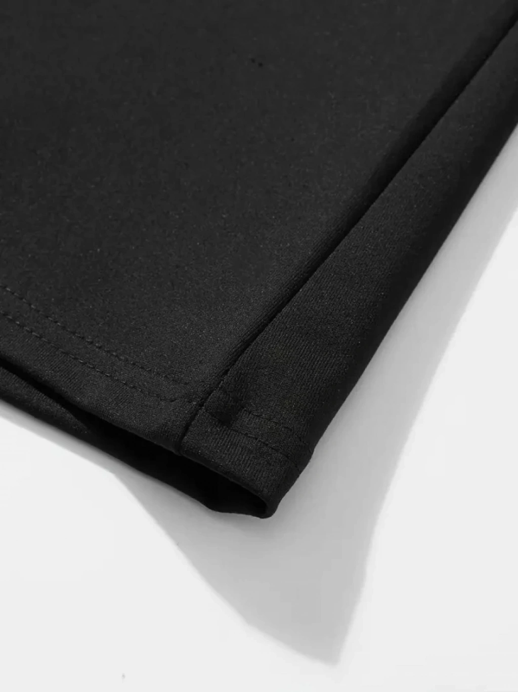 Erkek Büyük Beden Kart Baskılı Düz Renk Kısa Kollu Bisiklet Yaka Tişört Gündelik Giyim - Siyah