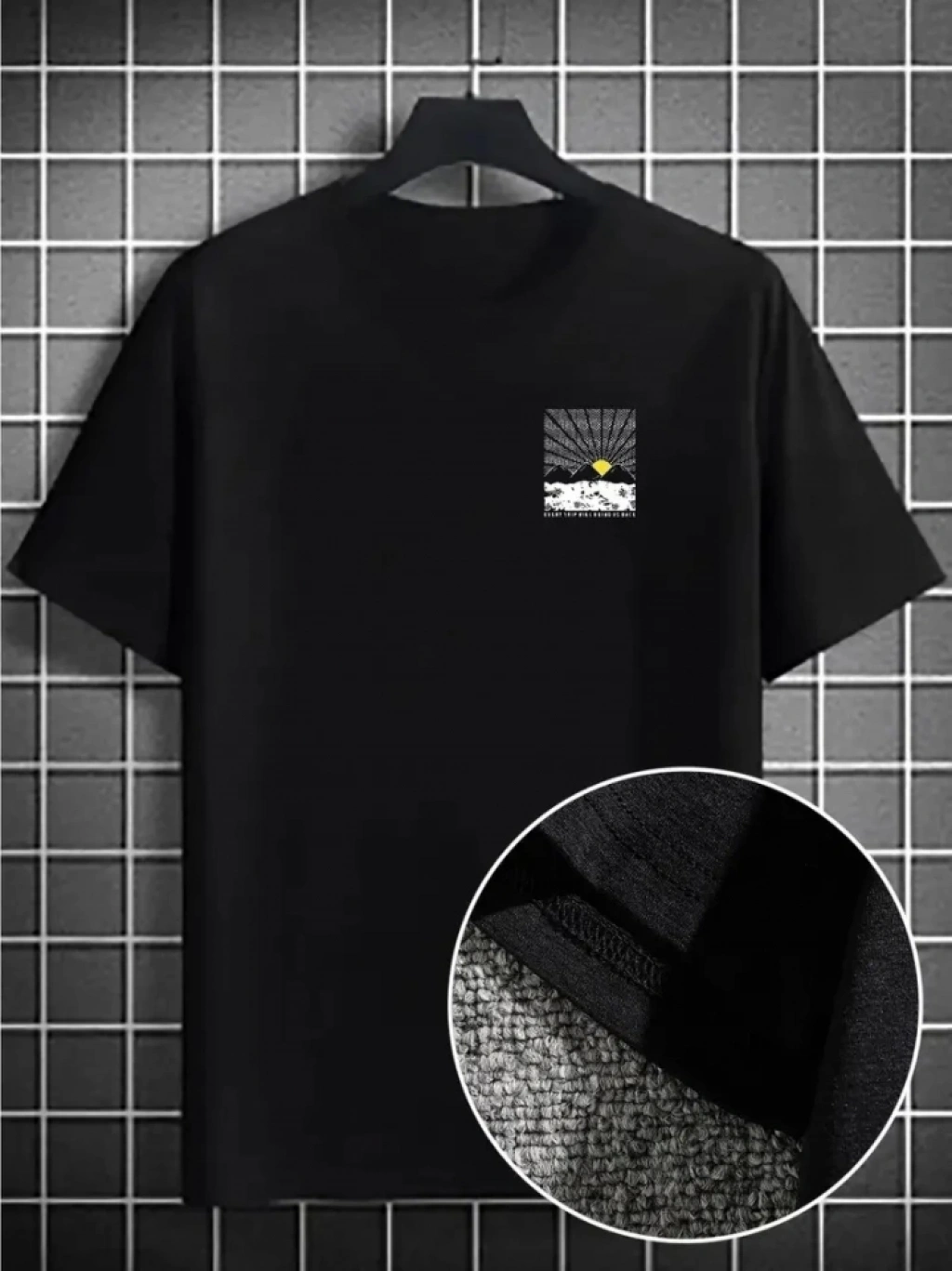 Erkek Dağ Grafikli Tişört, Yaz Için Büyük Beden Rahat T-shirt - Siyah