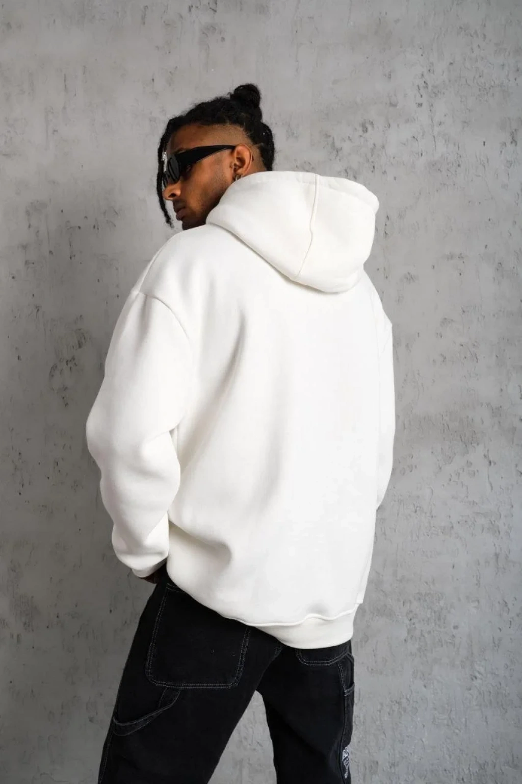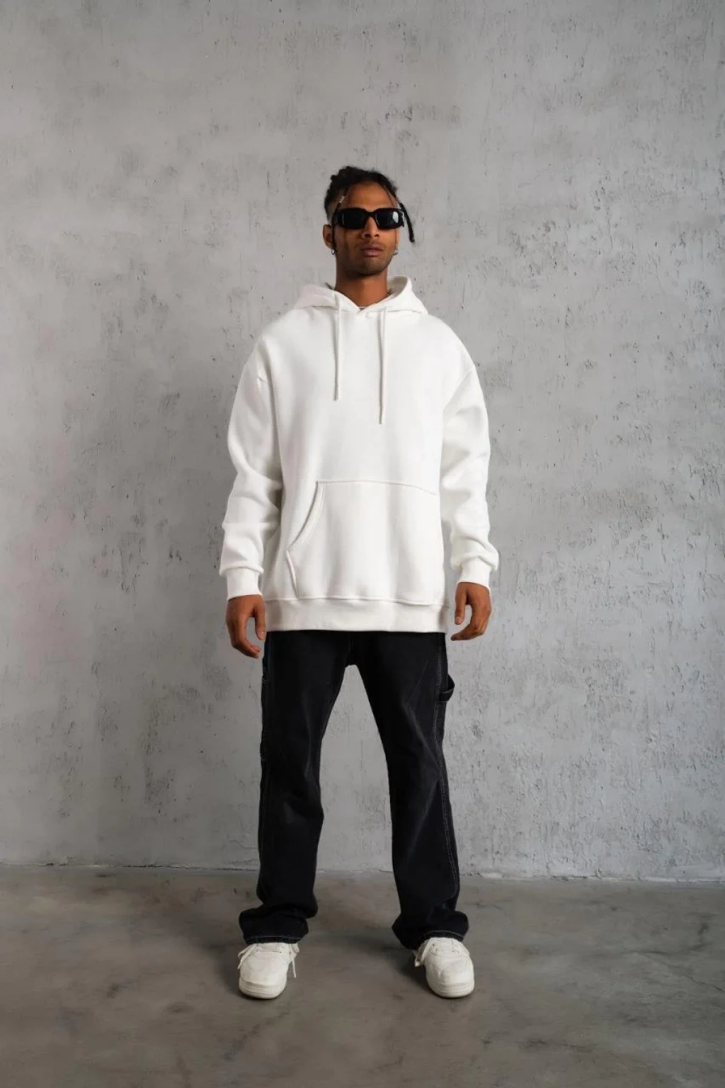 Erkek Düz Kapüşonlu Sweat - Beyaz