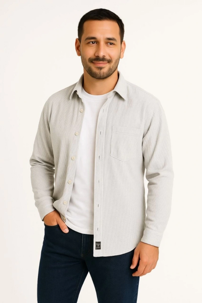 Erkek Fitilli Kadife Cepli Gömlek Oversize Rahat Kalıp - Gri