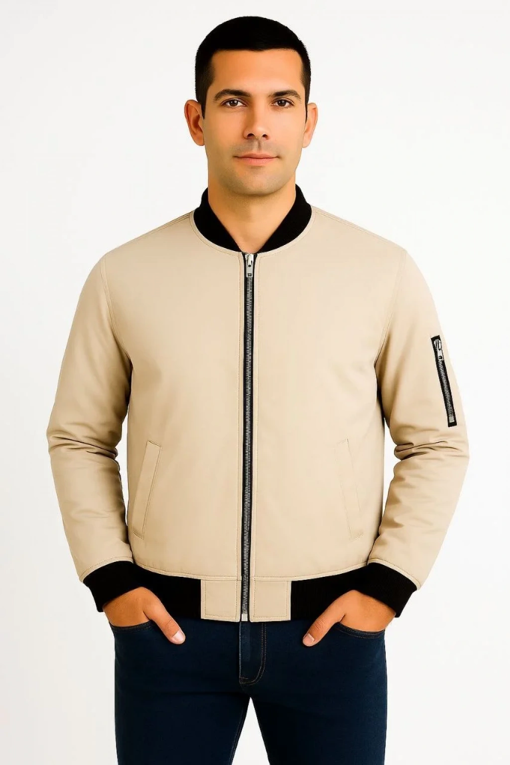 Erkek içi Astarlı Fermuarlı Bomber Mont Ceket - Bej