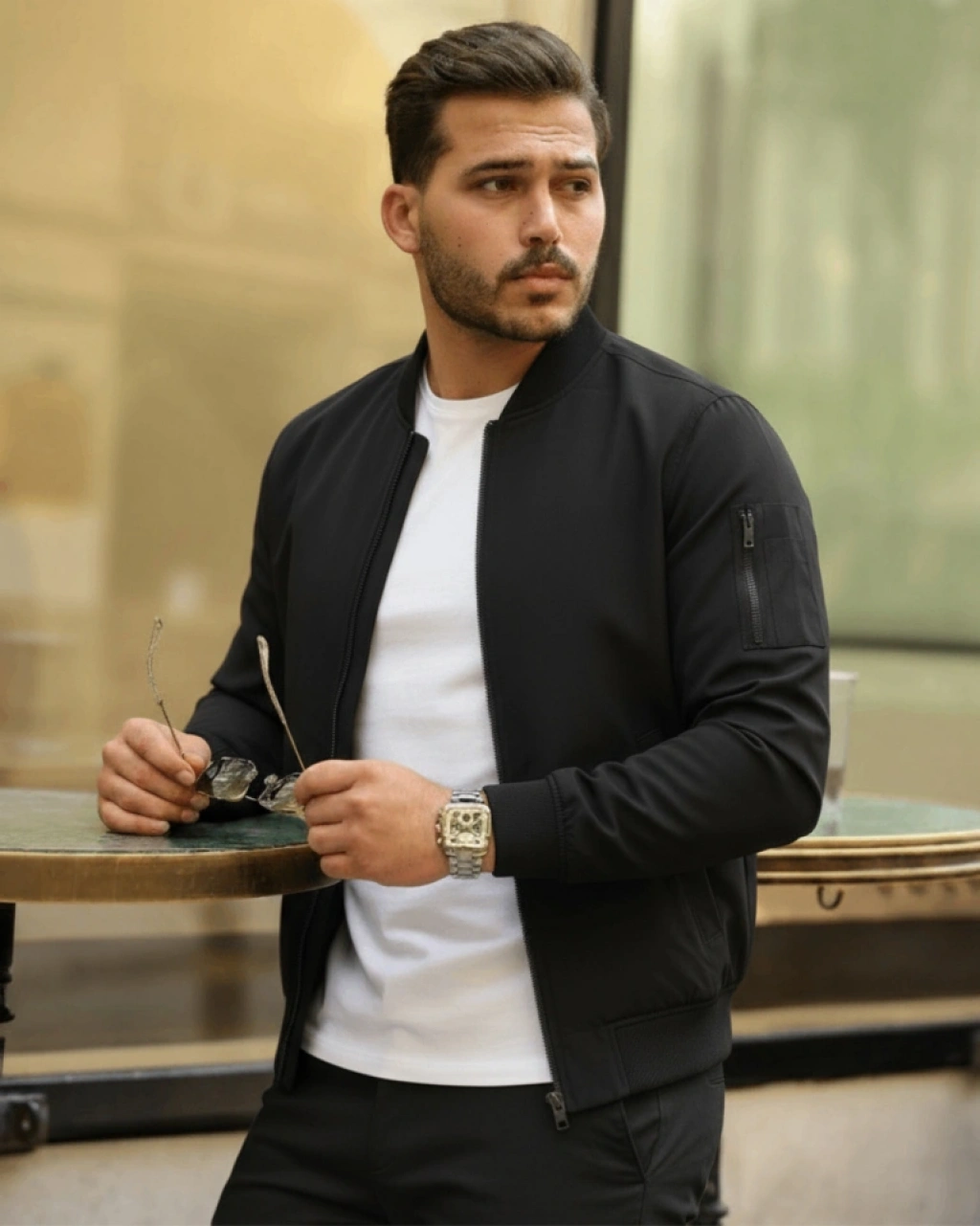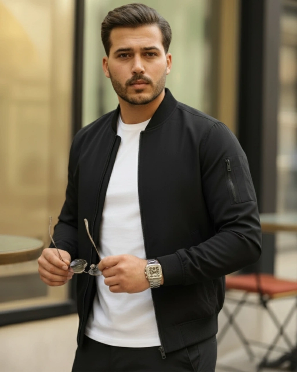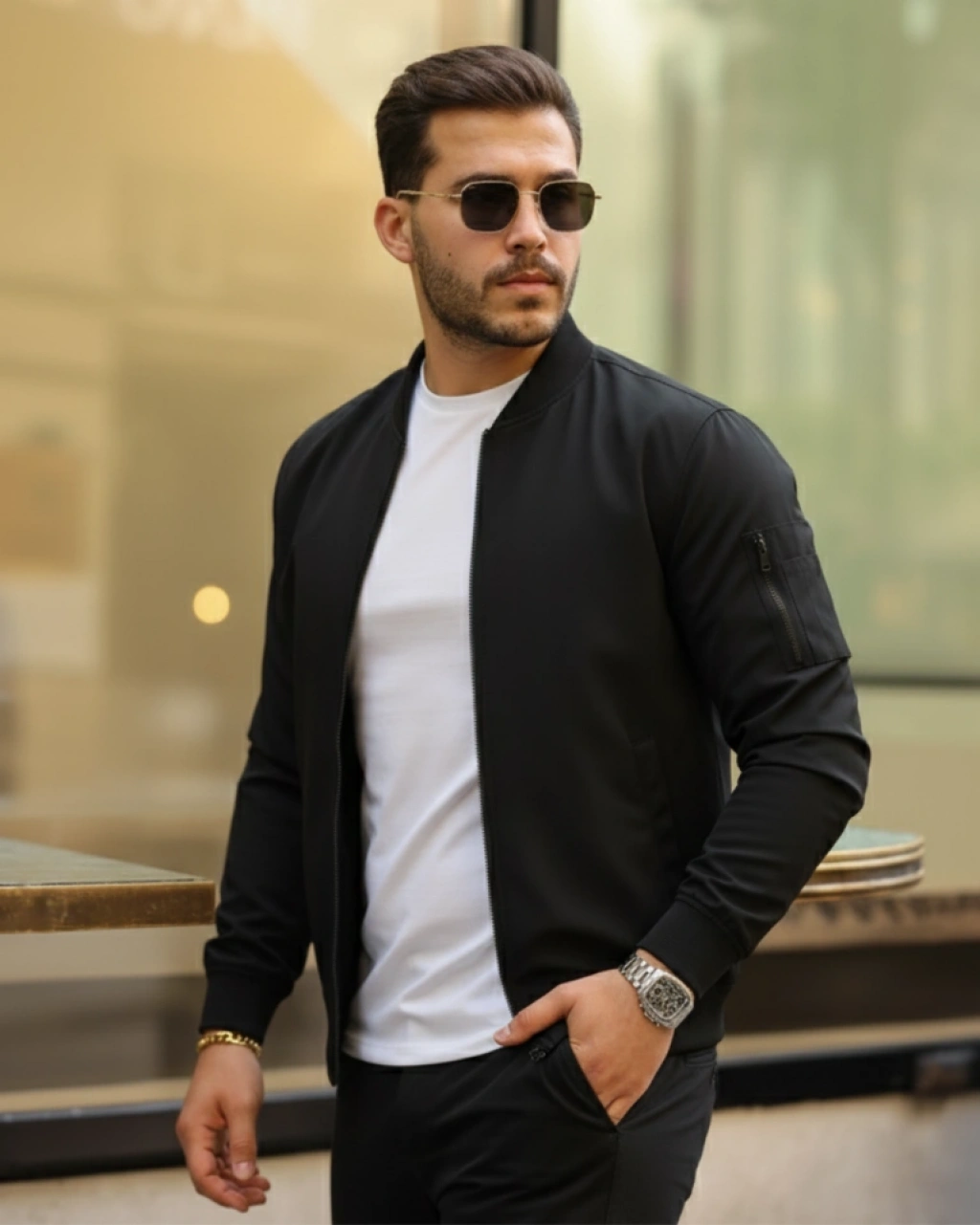 Erkek Içi Astarlı Fermuarlı Bomber Mont Ceket - Siyah