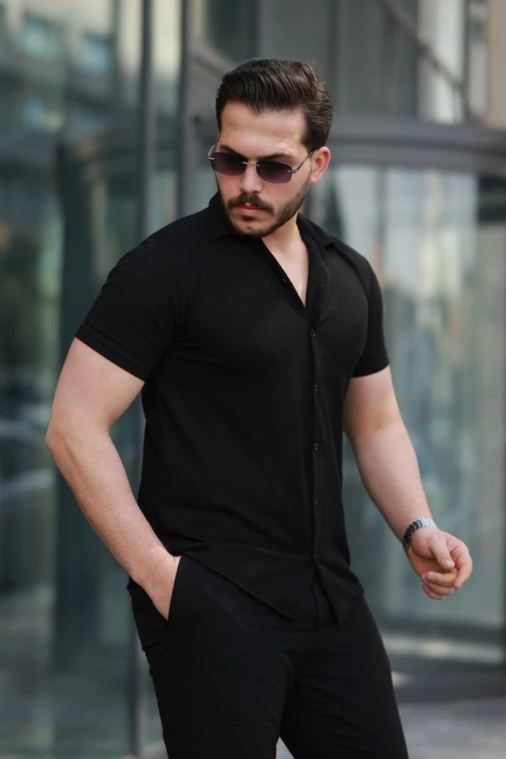 Erkek Kısa Kollu örme Kumaş Pamuklu Gömlek