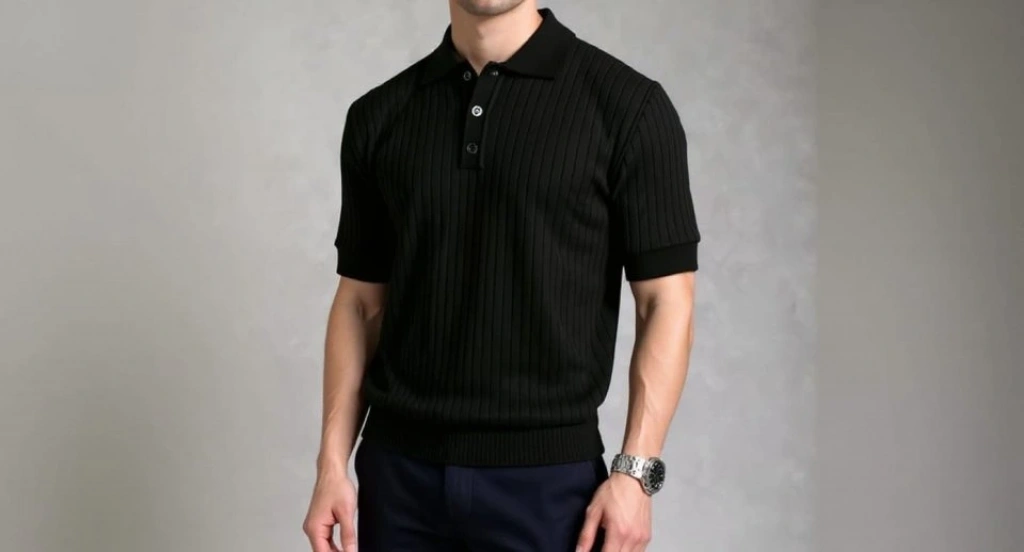 Erkek Kısa Kollu Yakalı Yakadan Düğmeli Triko Bluz