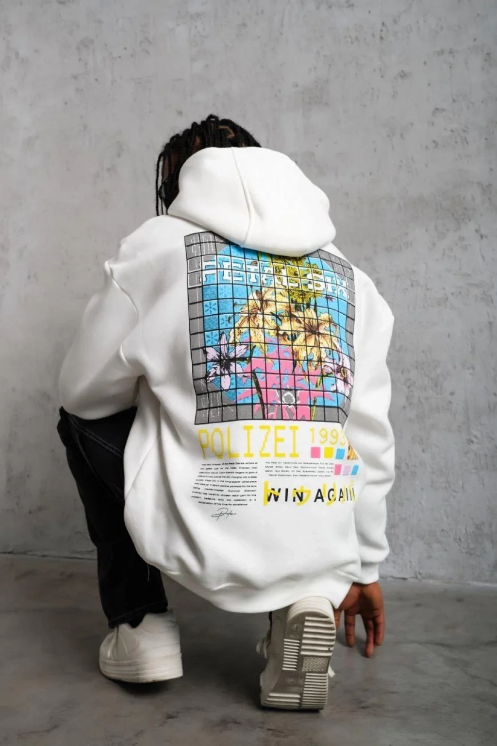 Erkek Patel Six Baskılı Kapüşonlu Sweat - Beyaz