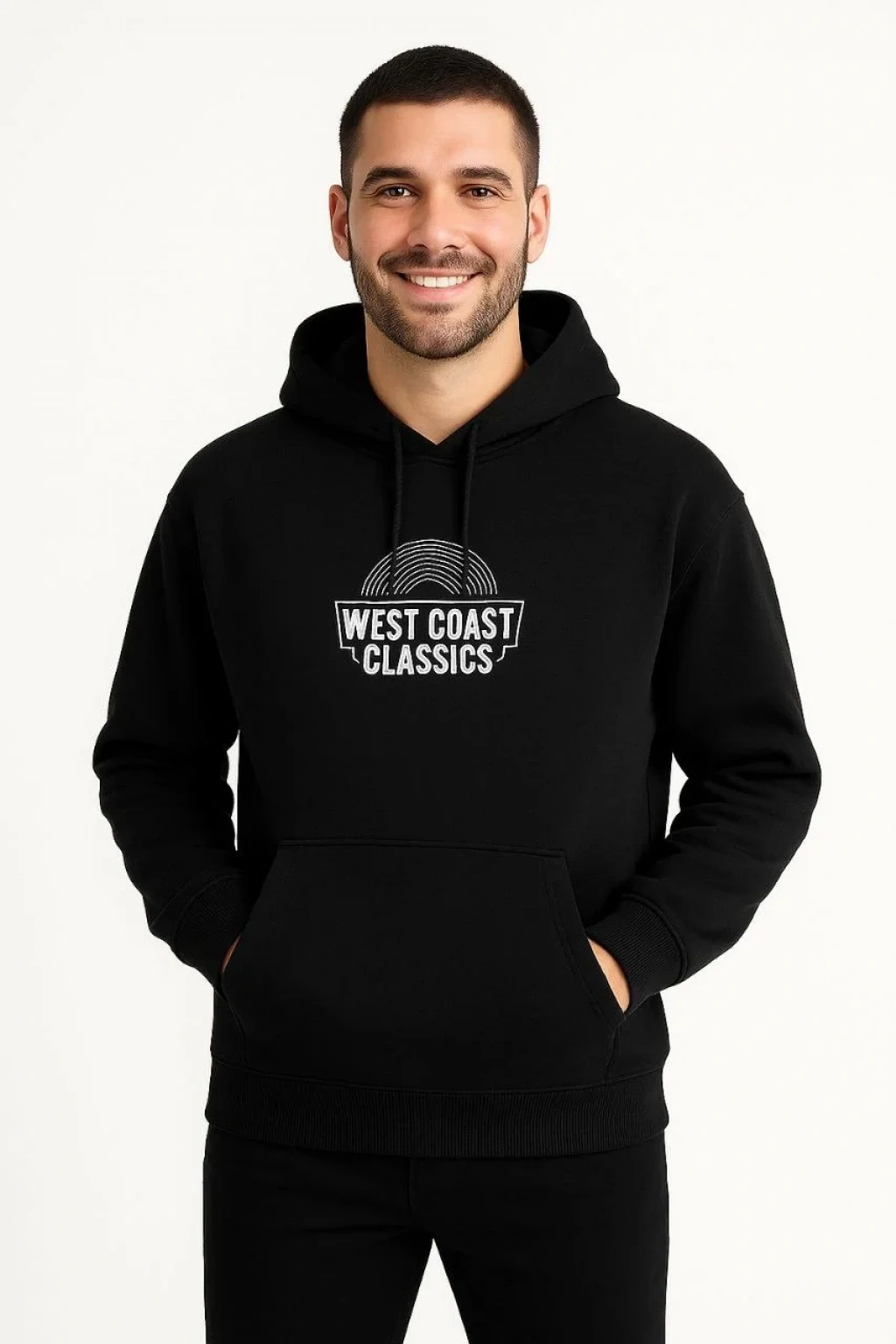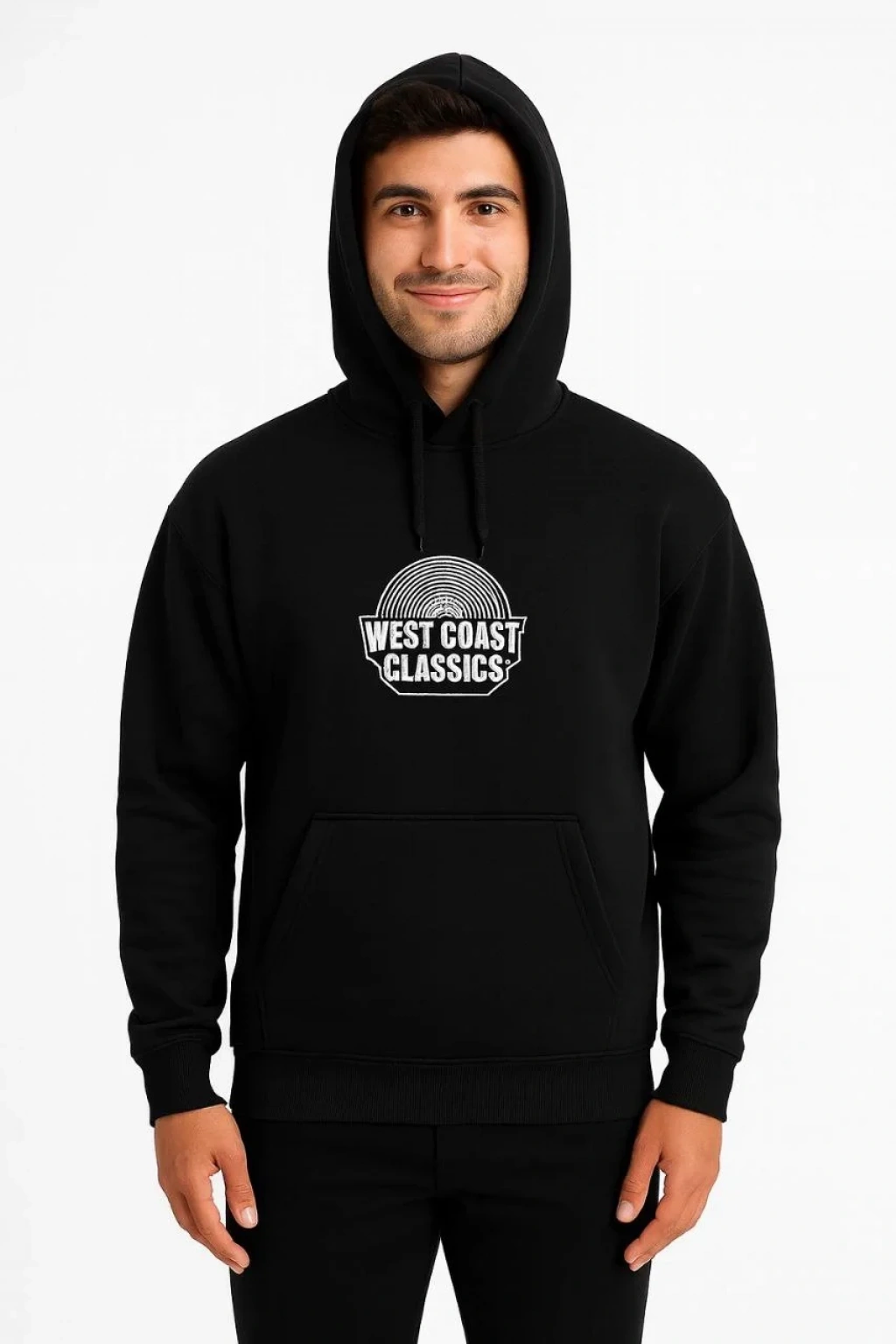 Erkek Üç İplik Kapüşonlu Ön ve Arka Baskılı SweatShirt hoodie - Siyah