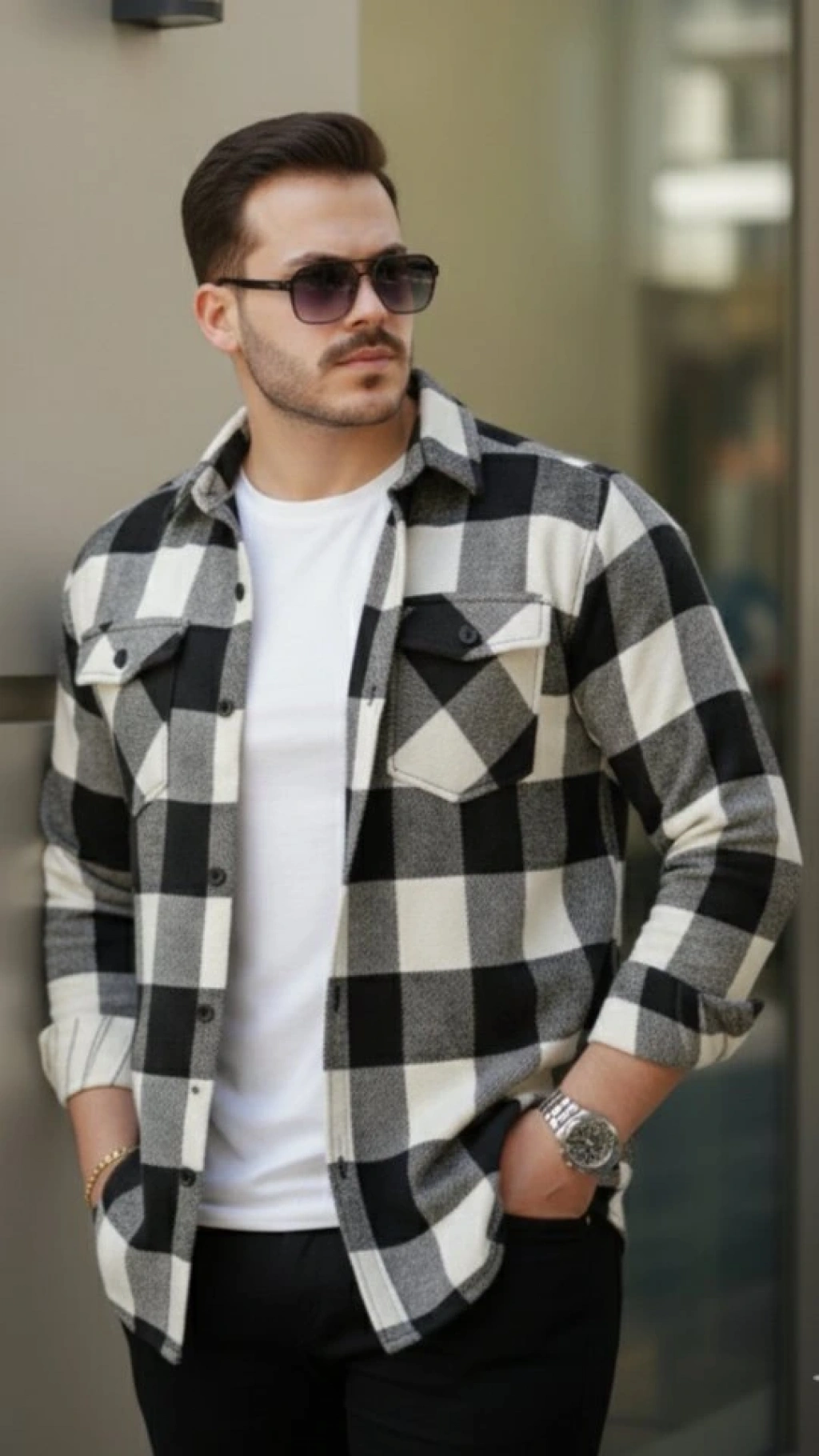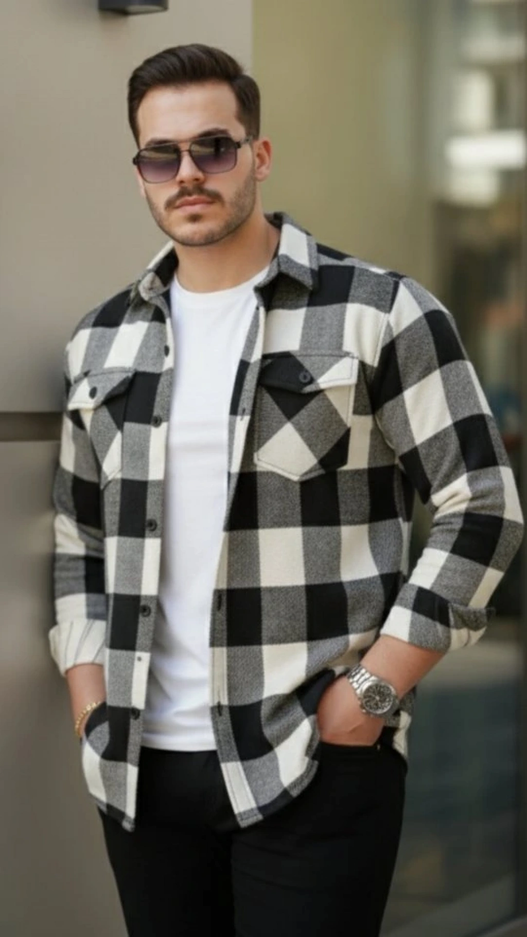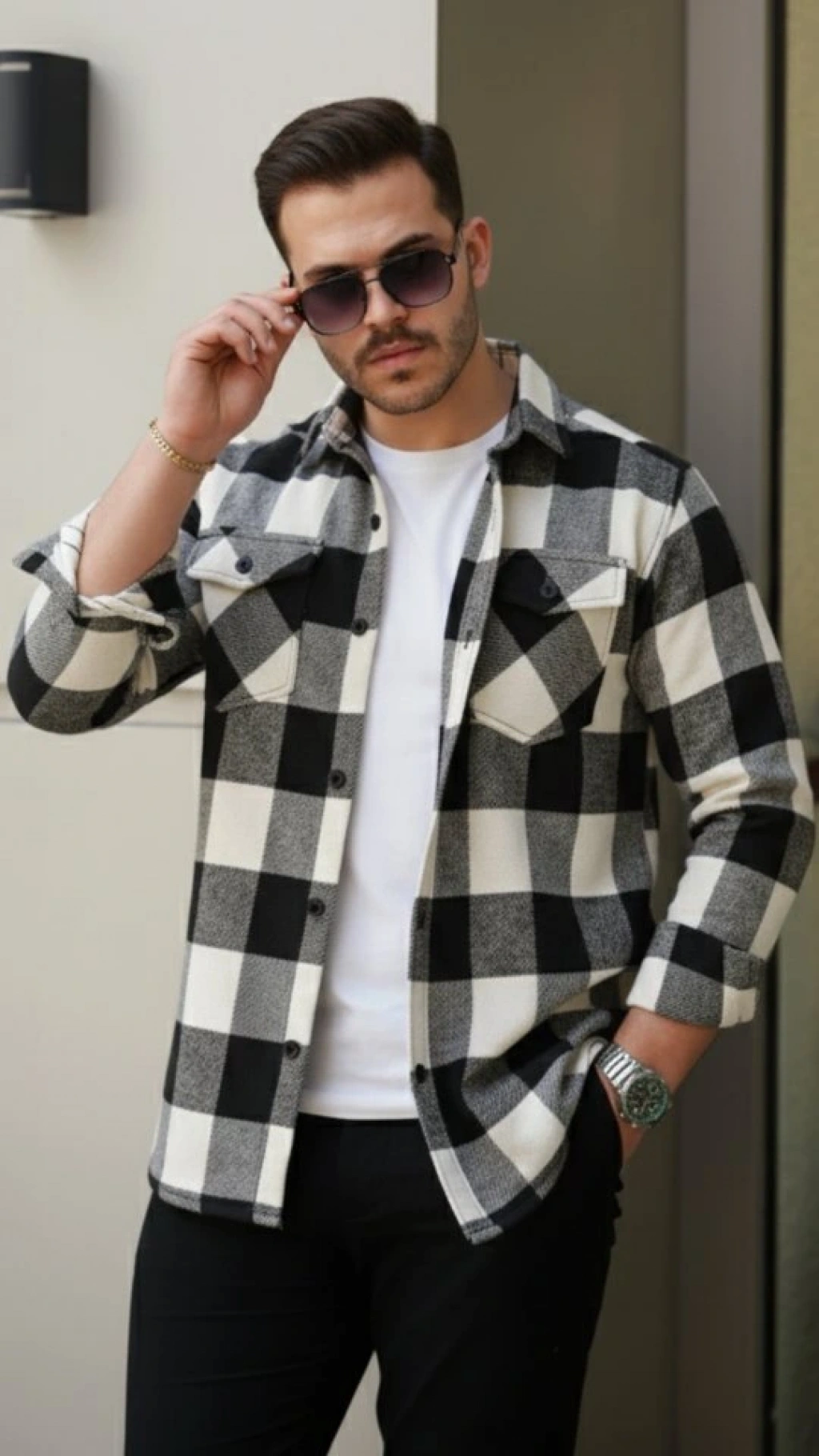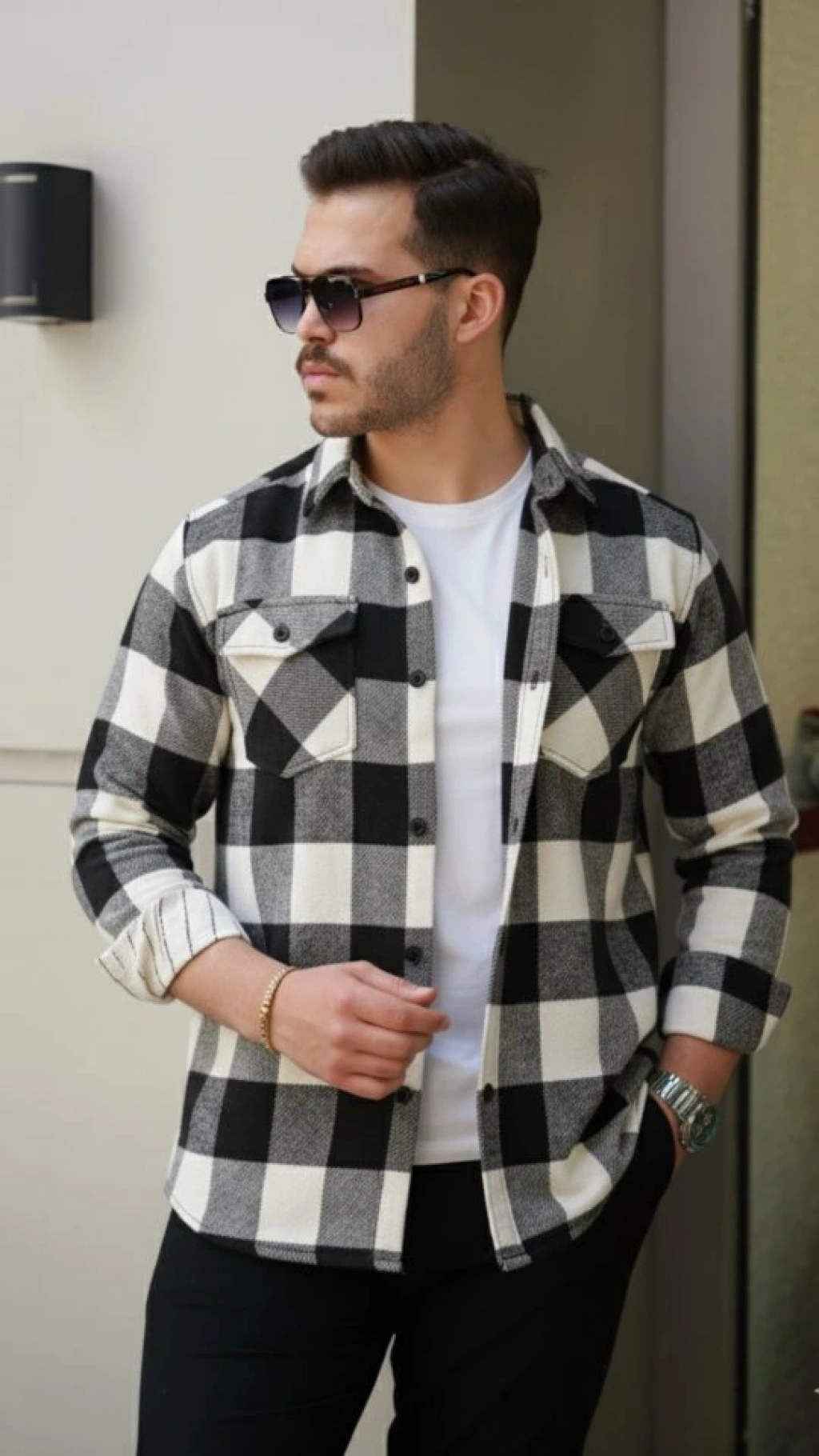 Erkek Uzun Kollu Oduncu Gömlek - Siyah