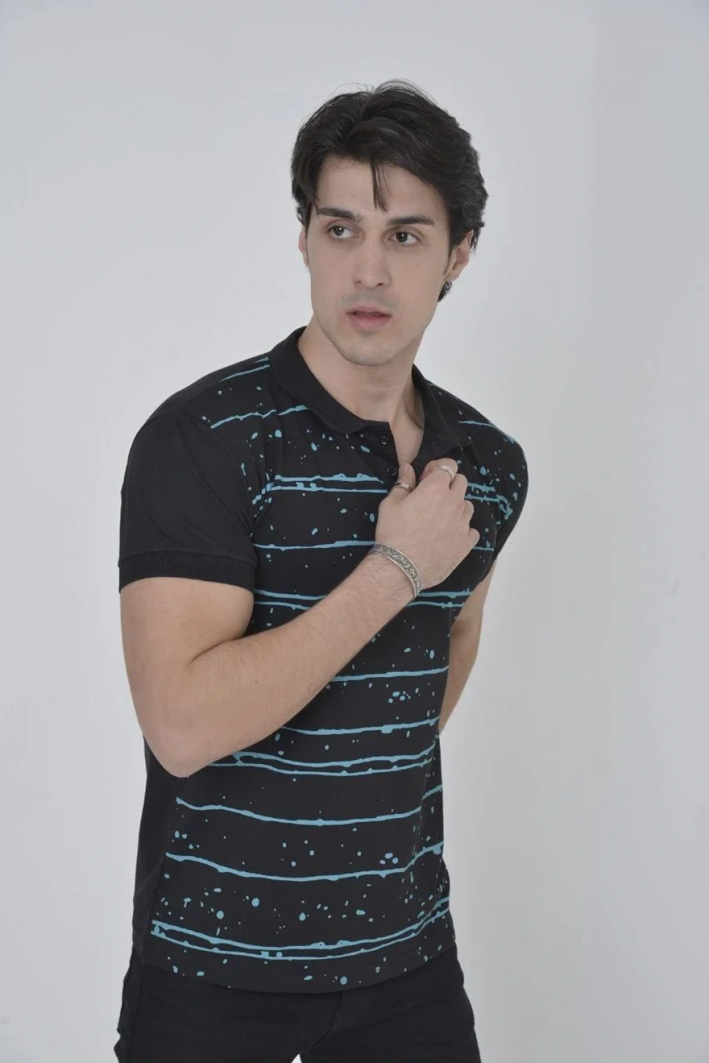 Erkek Yakalı Slim Fit Pike Çizgili T-Shirt - Siyah