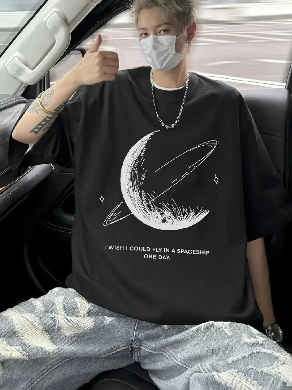 Erkekler için Siyah Tişört Grafik Genç Emo Vintage Gotik Rahat Büyük Beden Kısa Kollu Tişört Giysi Üst- Siyah
