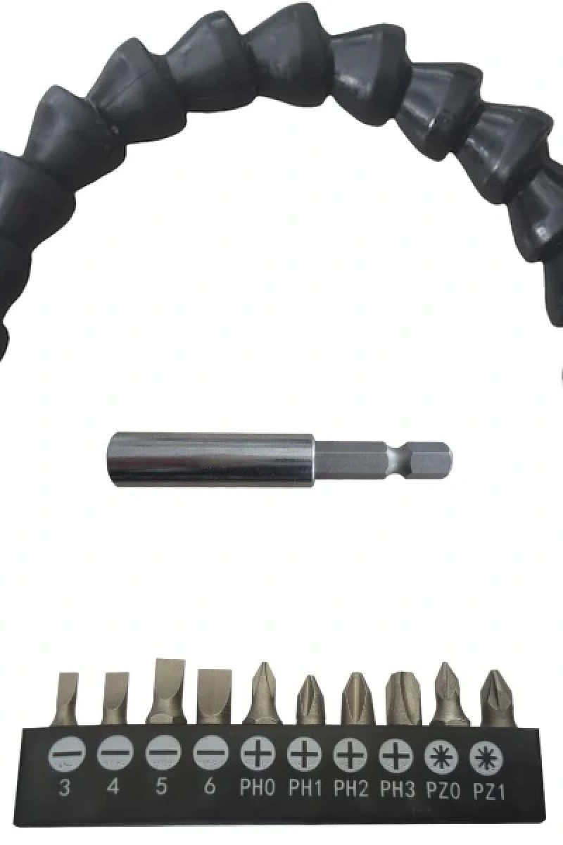 ESNEK ŞAFTLI TORNAVİDA UCU SETİÜrün ÖzellikleriEsnek şaftlı tornavida ucu seti, Phillips (Yıldız), düz uçlu, Torx (Yıldız-çentikli), Hex (Altıgen) gibi çeşitli uç tipleriyle farklı vida başlıklarına uyum sağlar. PH, H, T, SL gibi uç tipleriyle geniş bir kullanım alanı sunar. Esnek uzatma aparatı, ulaşılması zor yerlerde vidalama yapmanıza imkan tanır (örneğin mobilya köşeleri, dar alanlar gibi). Uç kısmı manyetiktir, böylece vida uçları kolayca tutturulur ve düşmez. Elektrikli matkap, vidalama makinesi veya manuel tornavida ile uyumludur. Evde tamir işleri, mobilya montajı, elektronik cihaz açma işlemleri için oldukça kullanışlıdır. Esnek şaftı 360 derece bükülebilir, bu da sert açılarda rahat çalışmanızı sağlar.Paket İçeriği1 Adet Esnek Şaftlı Tornavida Ucu Seti