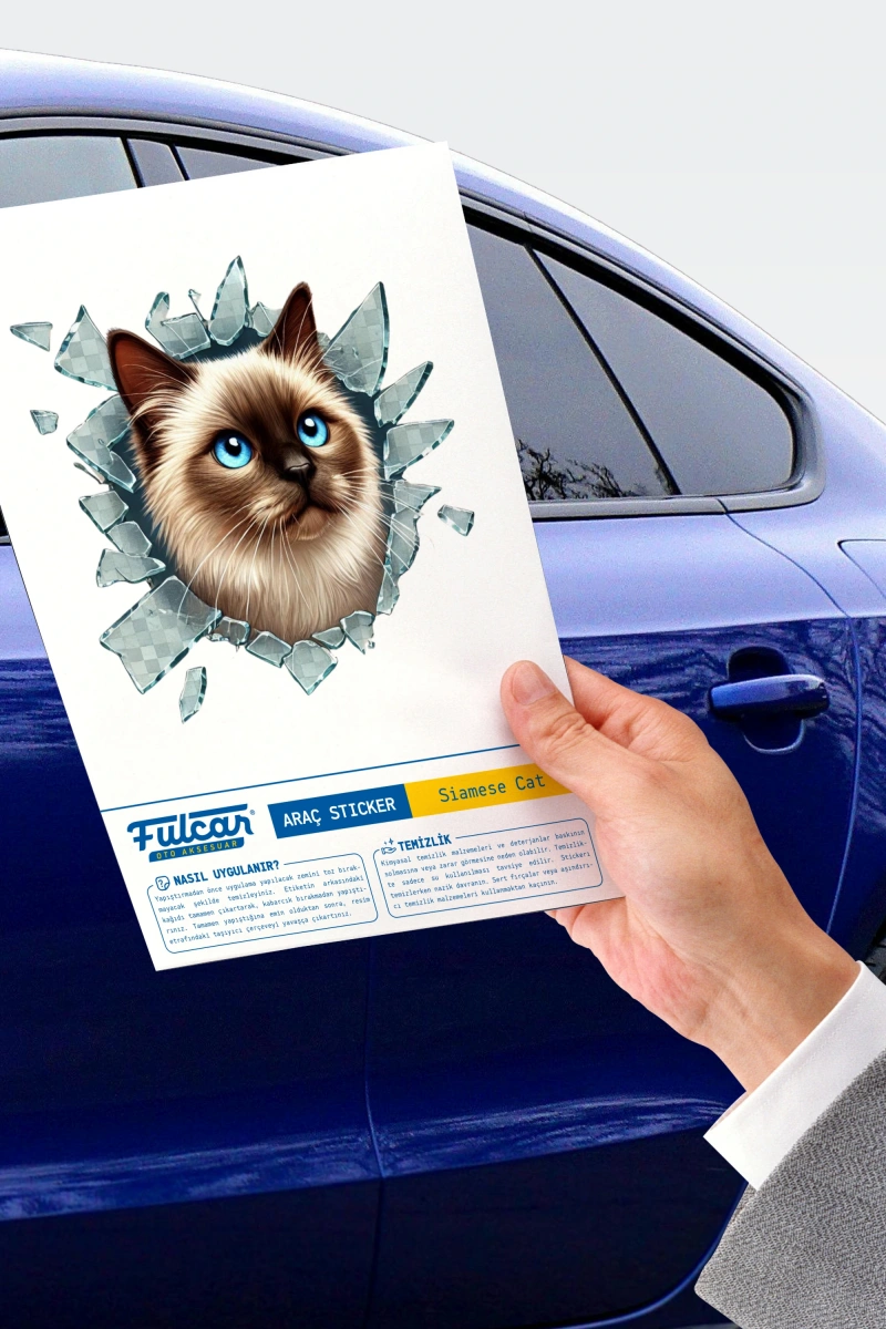 FULCAR SİAMESSE ARAÇ STICKERISürüş Keyfinize Eğlence Katın!Aracınıza eğlence ve yaratıcılık katmak için tasarlanan Fulcar Araç Stickerı, adeta camı kırarak araba kelebek camından dışarı çıkan 3D bir kedi yüzü tasarımına sahiptir. Bu eğlenceli ve gerçekçi tasarım, aracınıza benzersiz bir görünüm kazandırır ve dikkat çekici bir estetik sunar.Nasıl Uygulanır? 1. Hazırlık: Uygulama yapılacak zemini tozdan arındıracak şekilde temizleyiniz. Yüzeyin tamamen kuru ve pürüzsüz olduğundan emin olunuz. 2. Yapıştırma: Etiketin arkasındaki kağıdı tamamen çıkartarak, dikkatlice ve kabarcık bırakmadan yapıştırınız. 3. Son Dokunuş: Tamamen yapıştığına emin olduktan sonra, resim etrafındaki taşıyıcı çerçeveyi yavaşça çıkartınız.Temizlik:Stickerınızın ömrünü uzatmak için kimyasal temizlik malzemeleri ve deterjanlardan kaçınınız. Bu tür ürünler baskının solmasına veya zarar görmesine neden olabilir. Temizlikte yalnızca su kullanımı tavsiye edilir. Stickerı temizlerken nazik davranın ve sert fırçalar veya aşındırıcı temizlik malzemeleri kullanmaktan kaçının.Fulcar Araç Stickerı ile sürüş keyfinize eğlence katın! Hem estetik hem de dayanıklı olan bu sticker ile aracınıza kişisel bir dokunuş yapın.Ürün Ölçüleri10 cm. x 10 cm.Paket İçeriği1 adet fulcar siamesse araç stickerı