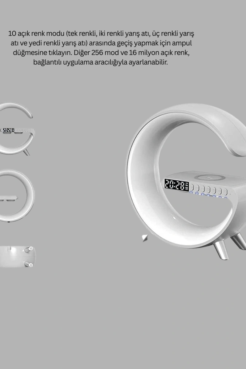 Fonksiyonellik ve estetiği bir arada sunan bu akıllı atmosfer lambası, aynı zamanda harika bir hediye seçeneğidir. Doğum günü, yılbaşı, Anneler Günü, Babalar Günü ve özel günler için hem şık hem de kullanışlı bir armağan olarak tercih edilebilir.Çoklu kullanım özellikleri sayesinde her yaştan kullanıcıya hitap eder. Ev, ofis, genç odası veya yatak odasında rahatlıkla kullanılabilir. Tek bir ürünle aydınlatma, müzik, alarm ve kablosuz şarj ihtiyaçlarını karşılamak isteyenler için ideal bir çözümdür.