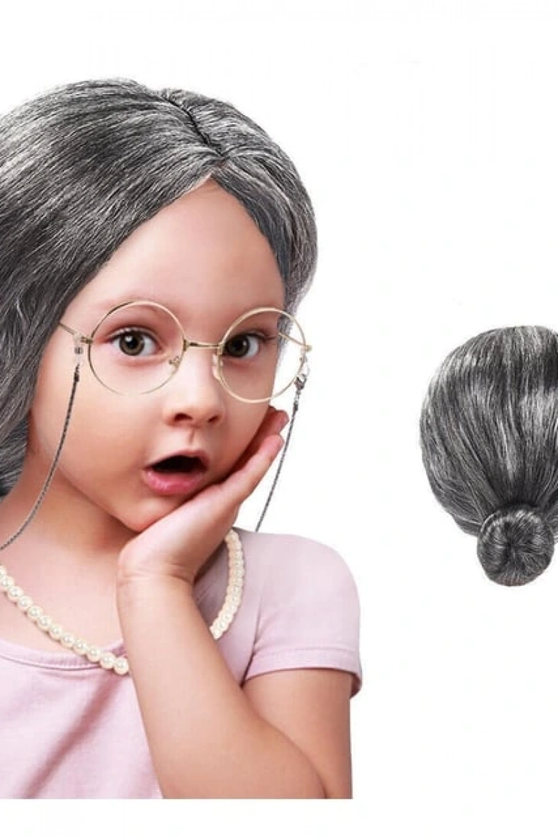 Gri Yaşlı Peruğu çocuk yetişkin uyumlu