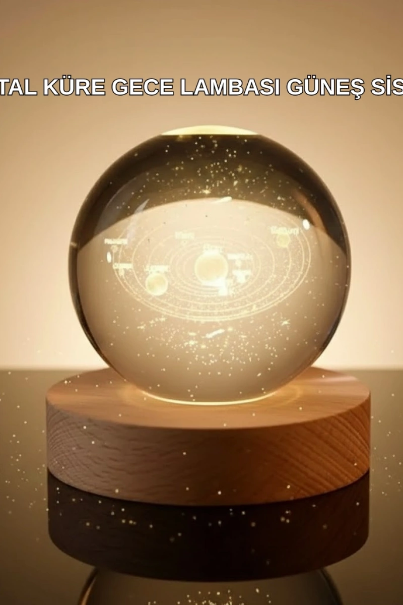 USB ile çalışan LED Kristal Küre, yaşam alanınıza sanatsal bir dokunuş kazandıran dekoratif bir objedir. İçindeki gezegen temalı lazer baskı son derece nettir ve ışık açıldığında içinde üç boyutlu bir görünüm oluşturur. Ahşap tabanı sayesinde dayanıklıdır ve modern dekorlara kolayca uyum sağlar. Gece lambası olarak kullanılan yumuşak ışığı odanıza huzur verir. Kendine özgü tasarımıyla hem dekor hem aydınlatma işlevini bir arada sunar.