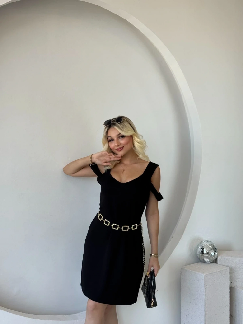 Kadın Askılı Soğuk Omuz Detaylı Modal Elbise