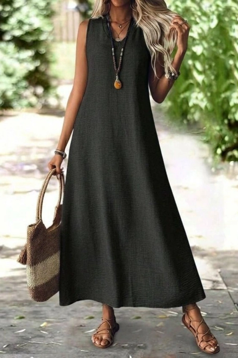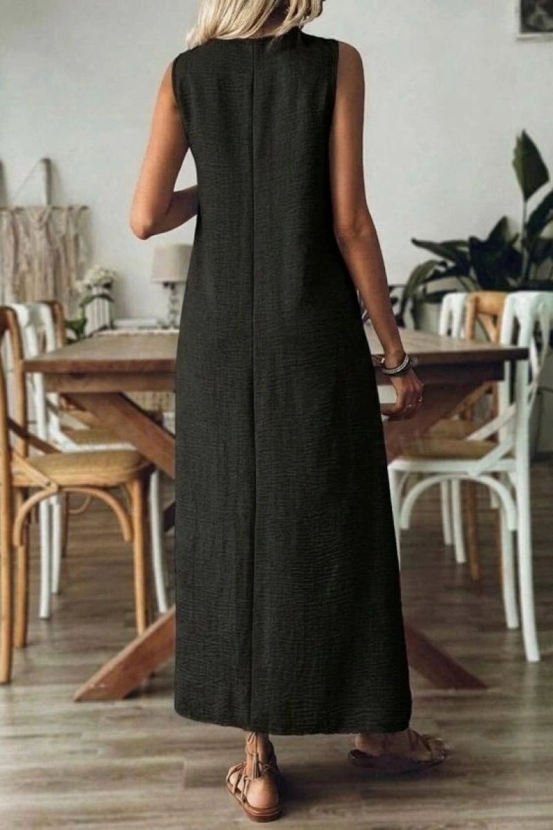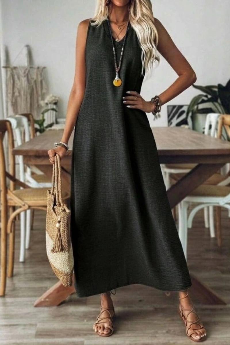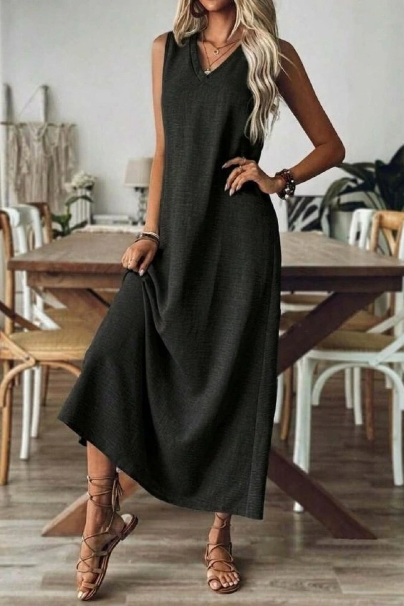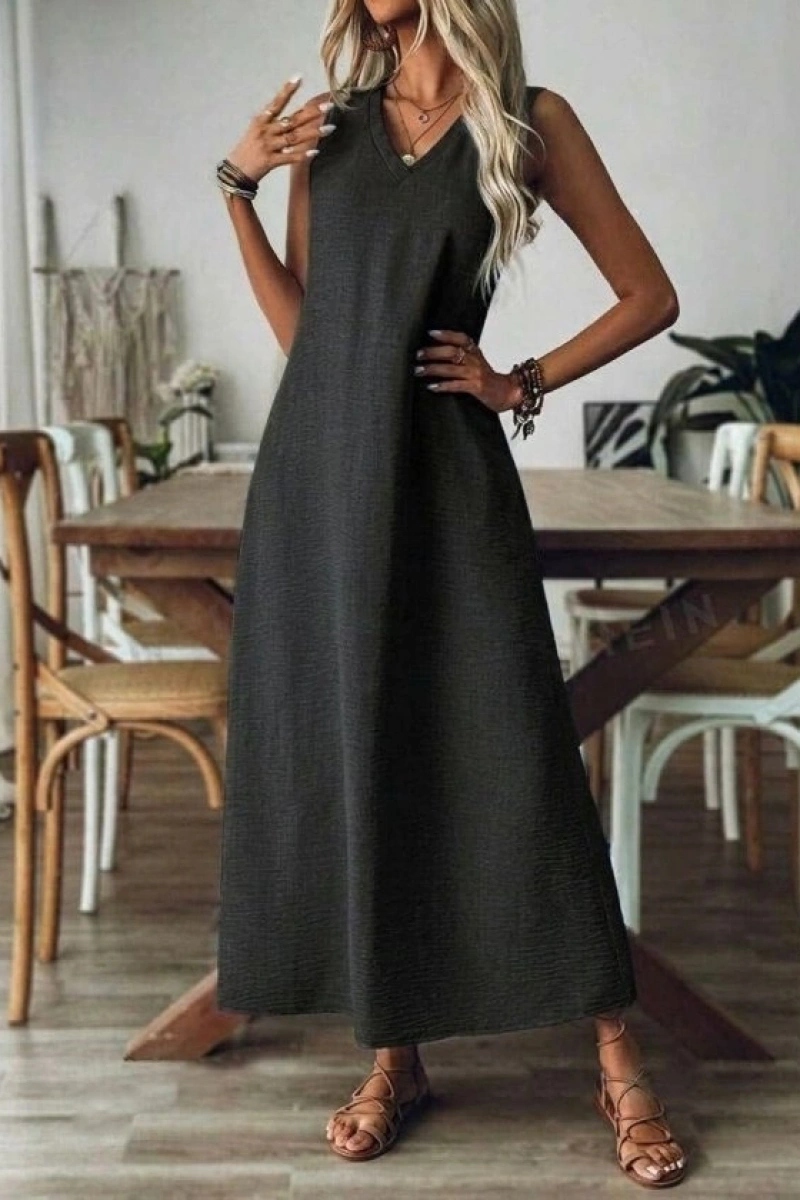 Kadın Askılı V Yakalı Uzun Elbise