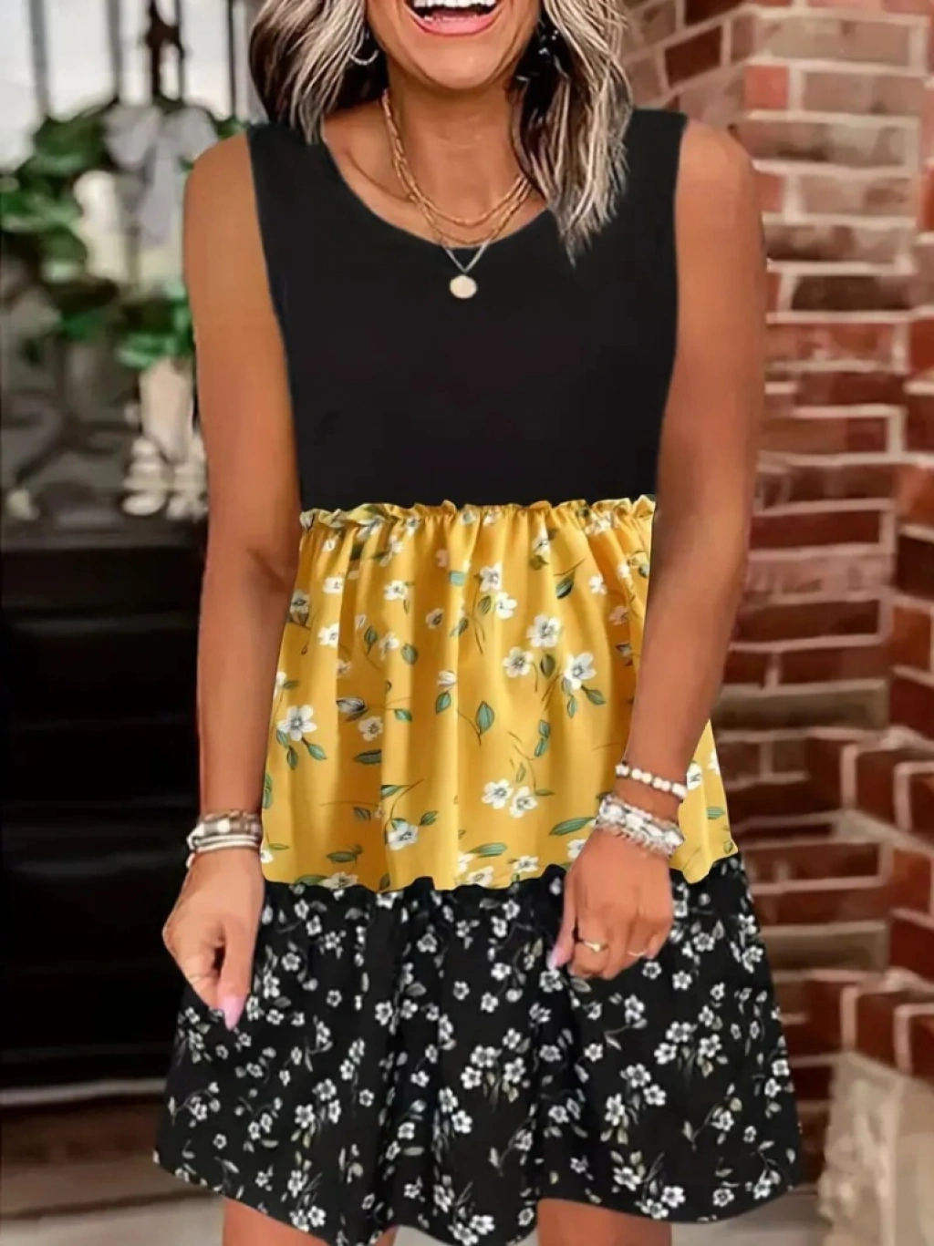 Kadın Askılı Yuvarlak Yaka çiçek Baskılı Salaş Süprem Elbise