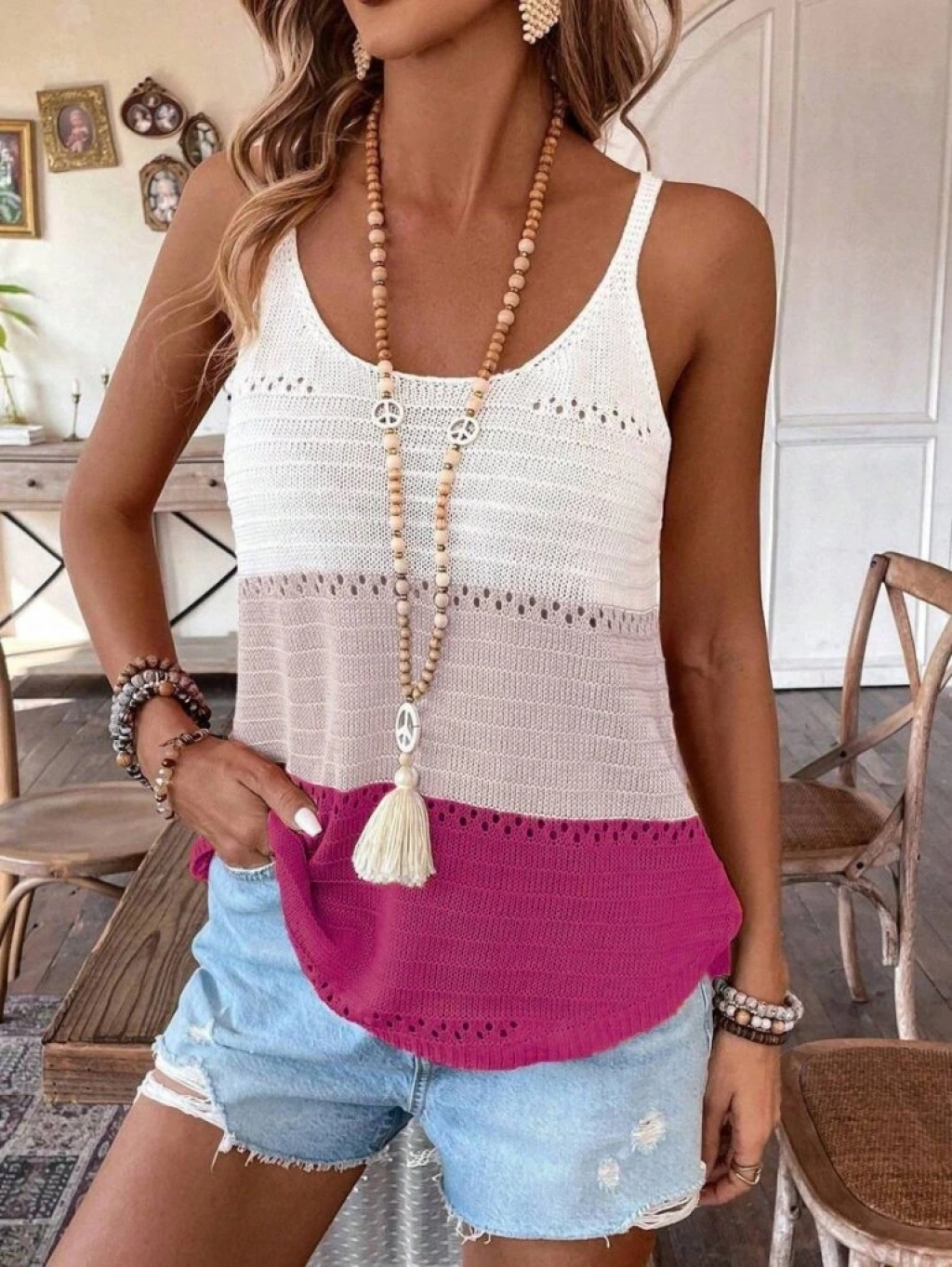 Kadın Askılı Yuvarlak Yaka çift Renkli Triko Bluz