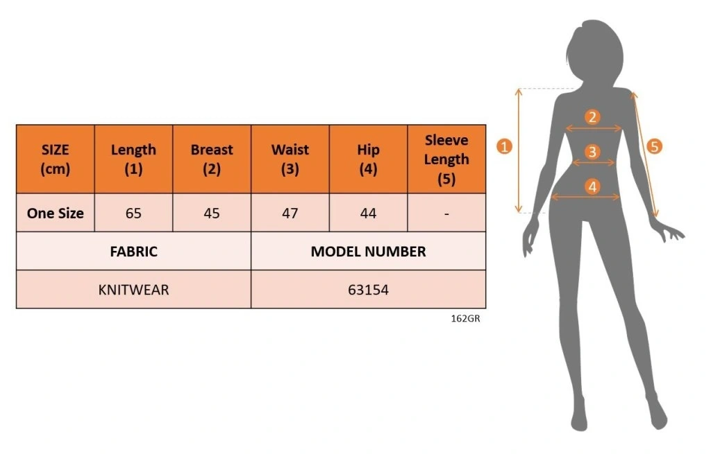 Modelin Ölçüleri: Boy:165, Kg:55, Göğüs:90, Bel:72, Kalça: 100