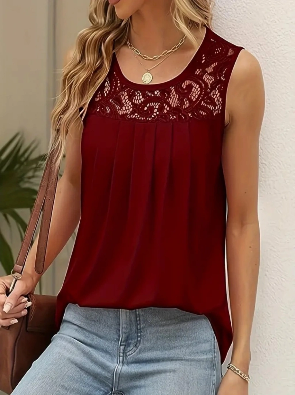 Kadın Askılı Yuvarlak Yaka Dantel Detaylı Viskon Bluz