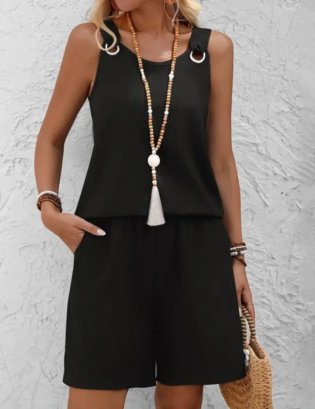 Kadın Askılı Yuvarlak Yaka Kuş Gözü Detaylı Bürümcük Bluz Ve Short Ikili Takım