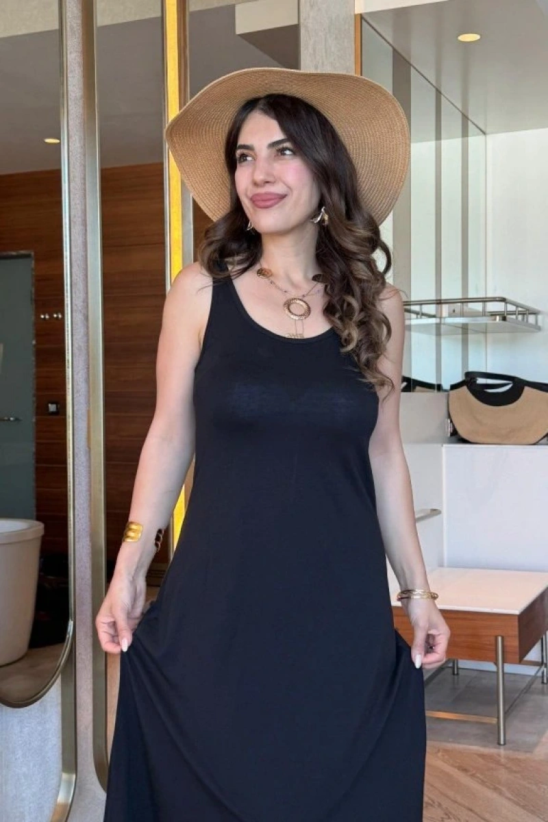 Kadın Askılı Yuvarlak Yakalı Viskon Elbise