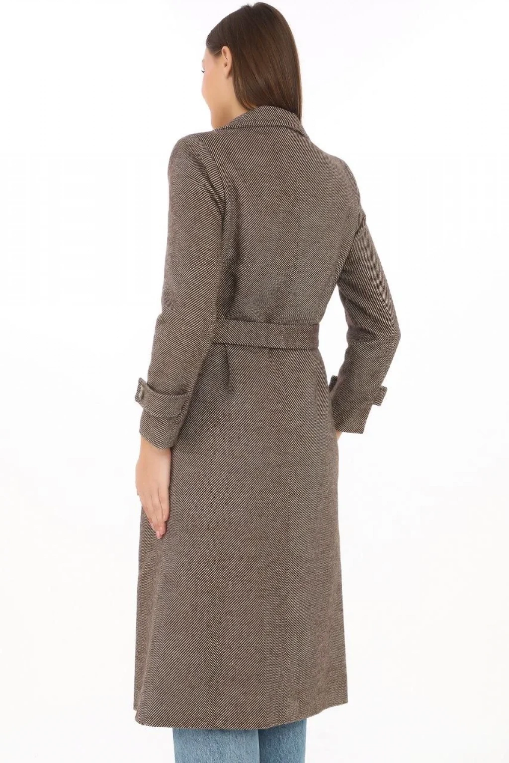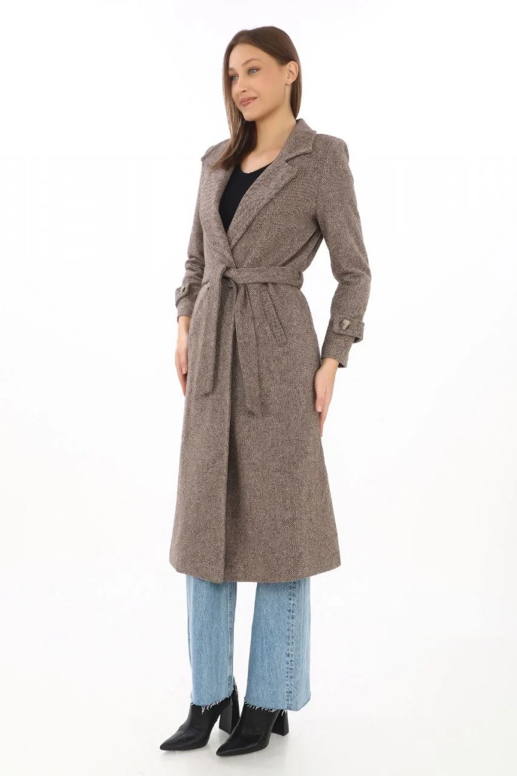Kadın Astarlı Balık Sırtı Kaşmir Kaşe Kaban - Vizon