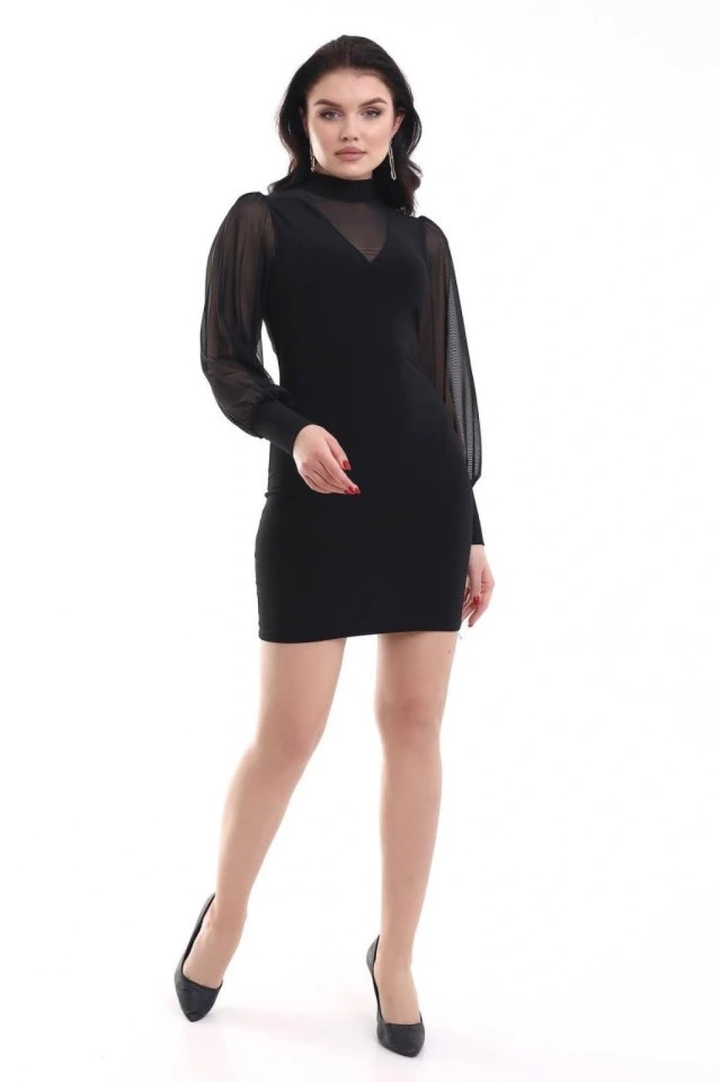 Kadın Balıkçı Yaka Transparan Detay Fırsat ürün Sandy Kumaş Mini Elbise