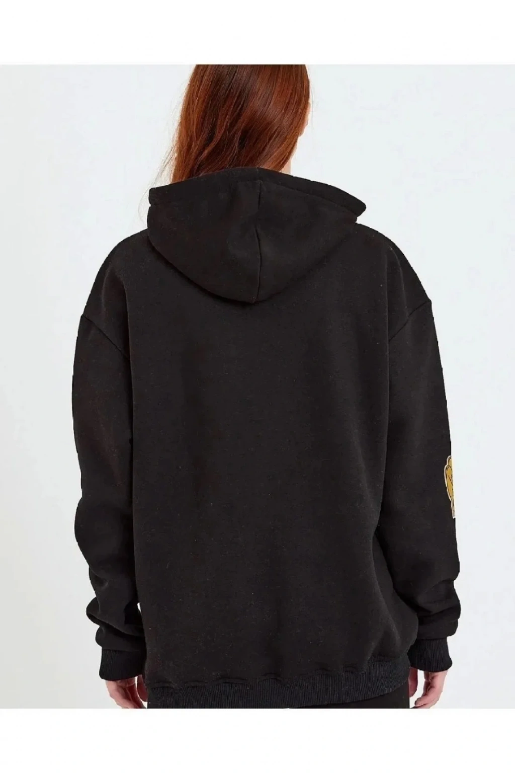 Kadın Baskılı Kapüşonlu Sweatshirt - Siyah